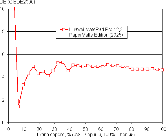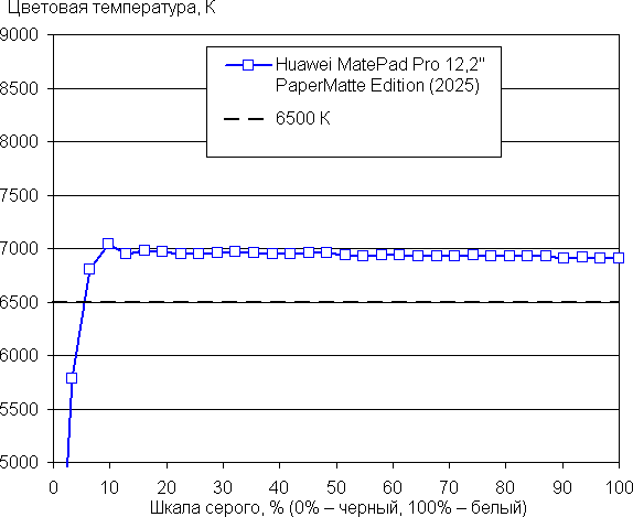 Напомним, что в случае OLED-экранов яркость фрагментов изображения может динамично меняться в соответствии с характером выводимого изображения. В итоге полученная зависимость яркости от оттенка (гамма-кривая), скорее всего, неточно соответствует гамма-кривой статичного изображения, так как измерения проводились при последовательном выводе оттенков серого почти на весь экран.