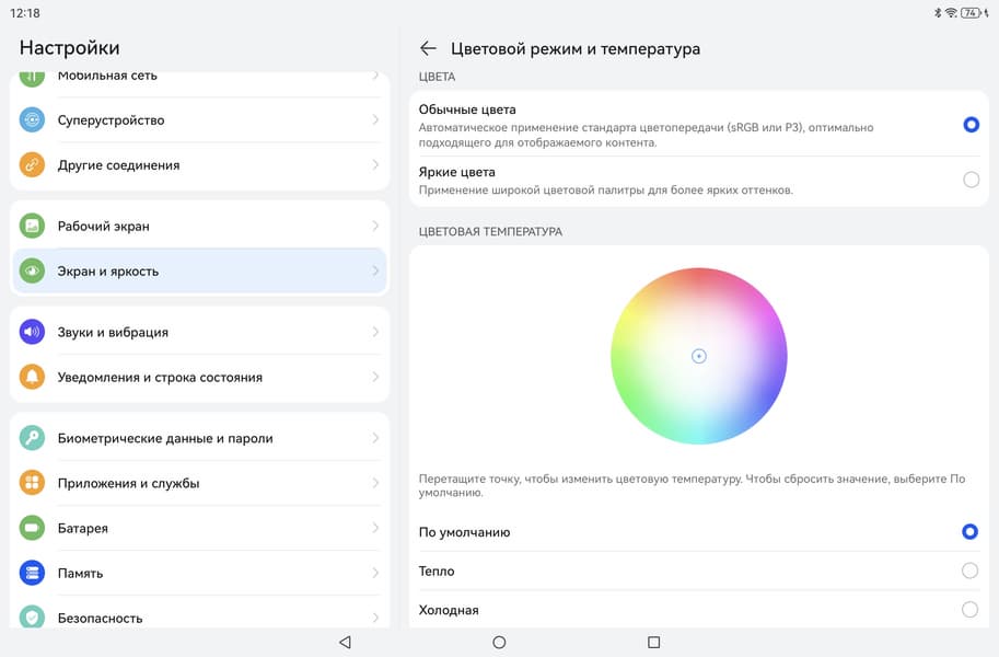 Фотография выше получена при активном профиле Обычные цвета в настройках экрана, всего их два: