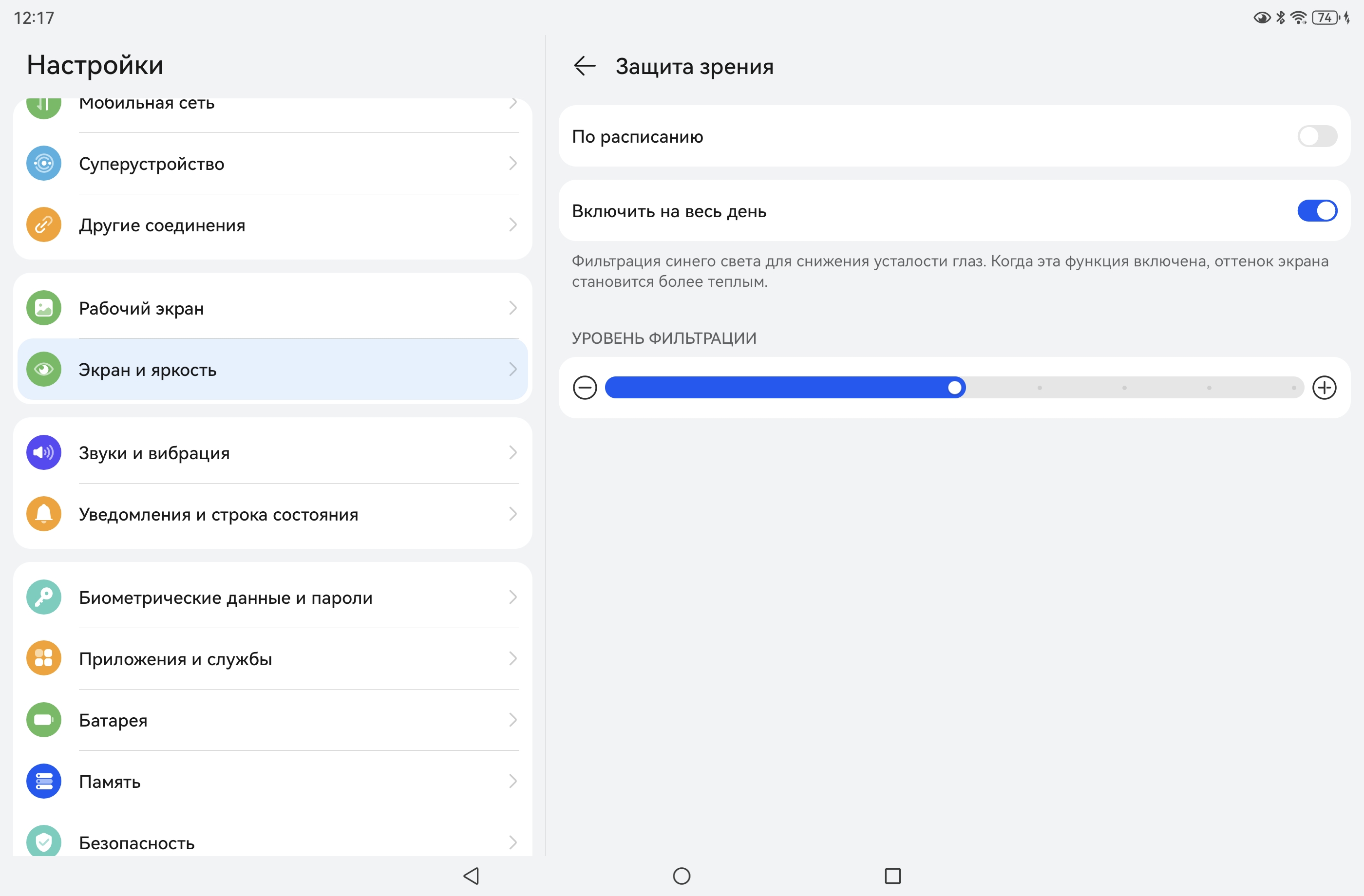 | Режим чтения, белый фон | 14 часов 50 минут | 15 часов 35 минут | 16 часов 35 минут |