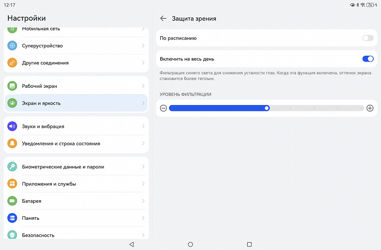 Планшет работает на базе HarmonyOS 4.3. Это новейшая версия ОС Huawei, с которой мы хорошо знакомы по предыдущим устройствам этого производителя, побывавшим у нас на тестировании.