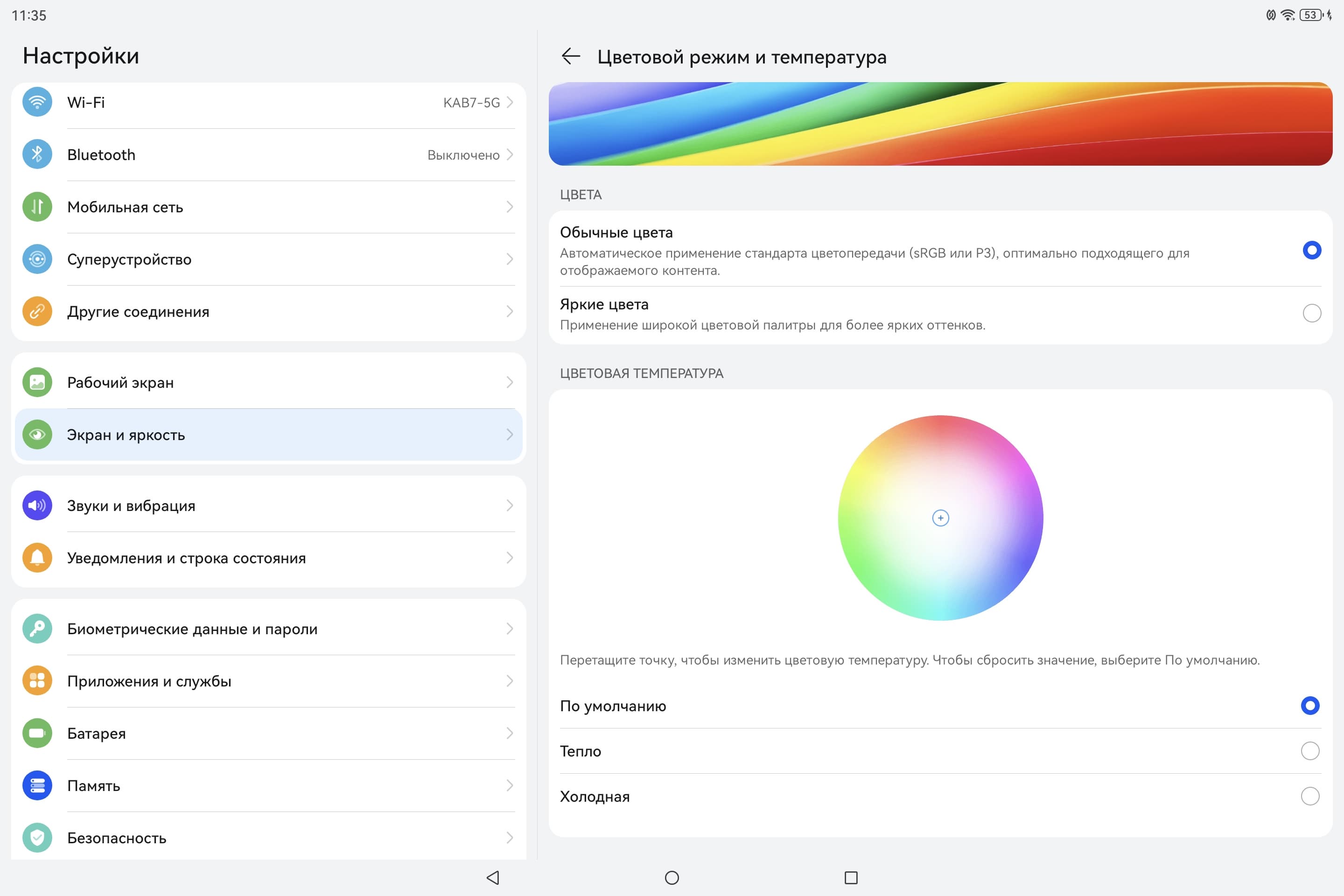 Фотография выше получена при активном профиле Обычные цвета в настройках экрана, всего их два: