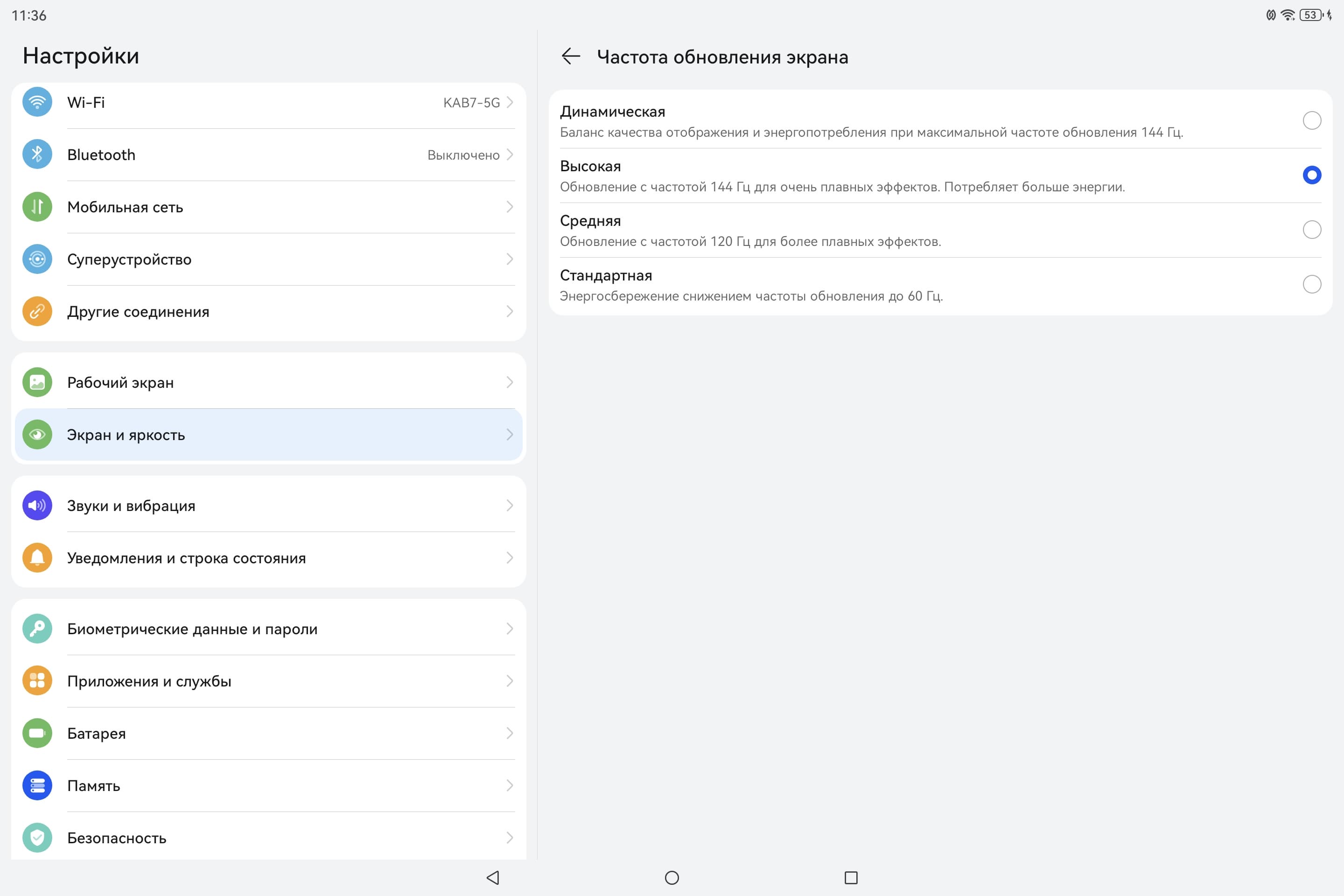 В настройках экрана можно включить режим с повышенной до 144 Гц частотой обновления: