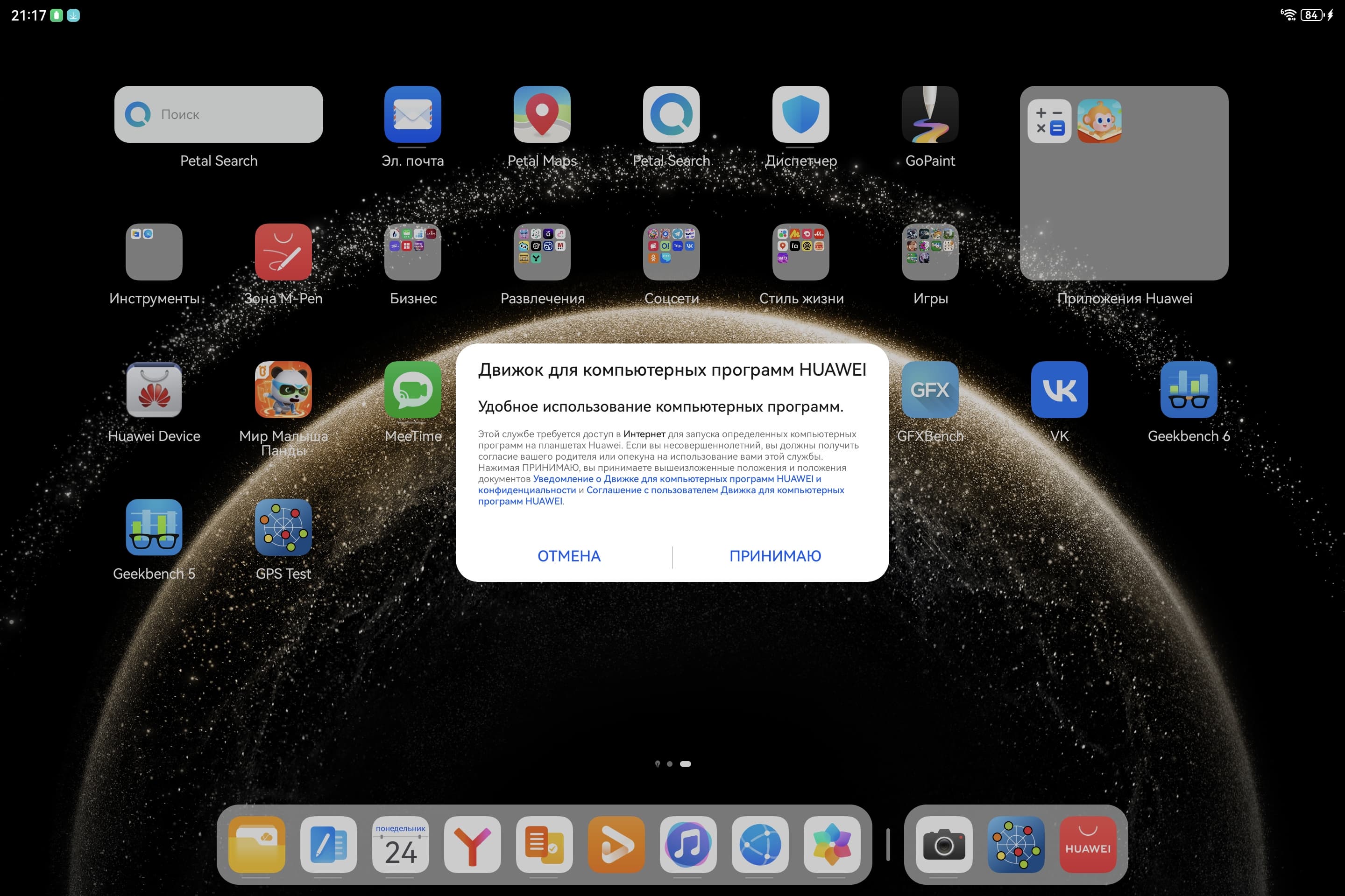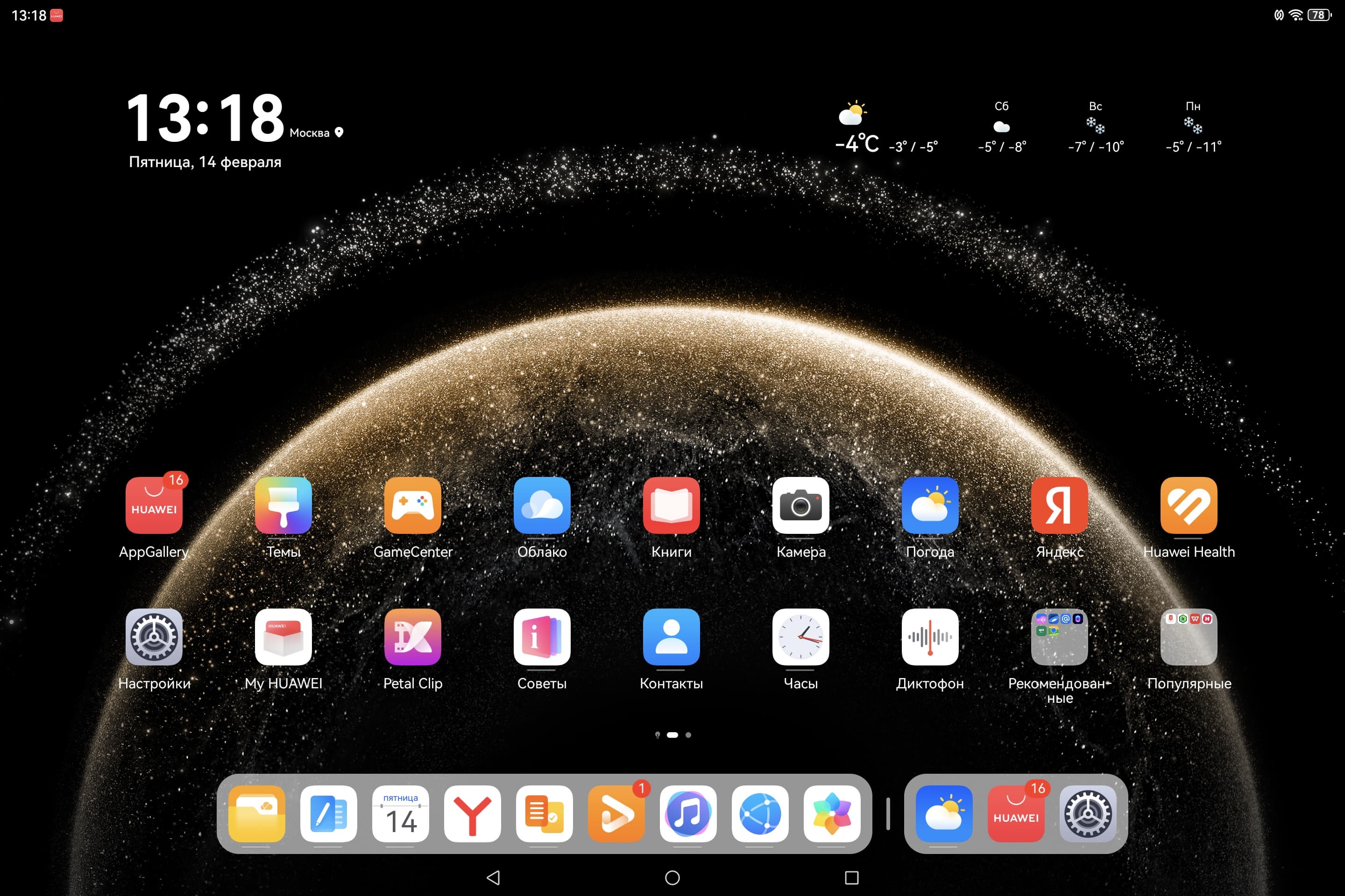 Планшет работает на базе HarmonyOS 4.3. Это новейшая версия ОС Huawei, с которой, впрочем, мы уже знакомы по предыдущим устройствам этого производителя, побывавшим у нас на тестировании.