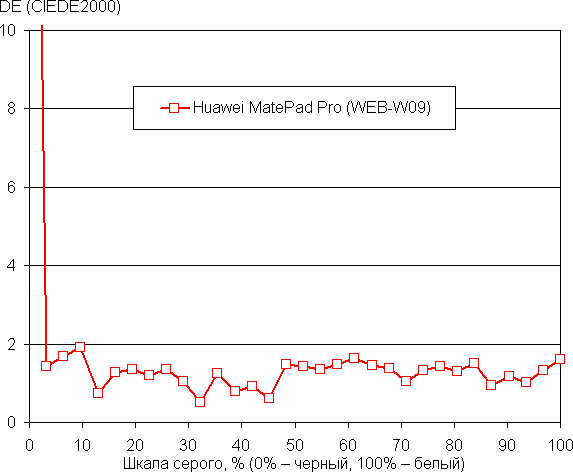 Напомним, что в случае OLED-экранов яркость фрагментов изображения динамично меняется в соответствии с характером выводимого изображения — чуть уменьшается для светлых в целом изображений. В итоге полученная зависимость яркости от оттенка (гамма-кривая), скорее всего, неточно соответствует гамма-кривой статичного изображения, так как измерения проводились при последовательном выводе оттенков серого почти на весь экран.