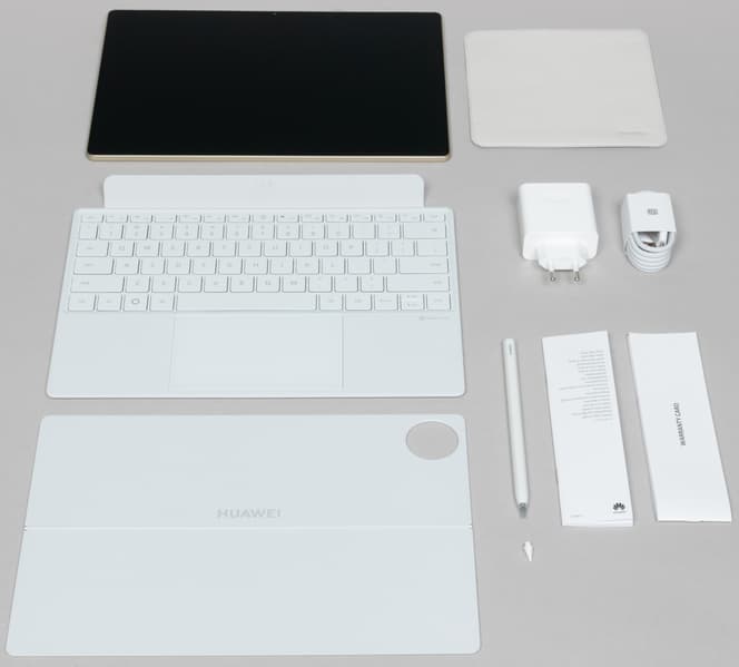 Как уже было сказано, планшет поставляется вместе с обложкой-клавиатурой, вдобавок к этому бесплатно можно получить стилус M-Pencil. Всё это и приехало к нам на тестирование. Но если раньше каждый аксессуар располагался в отдельной упаковке, то теперь клавиатура — внутри одного бокса с планшетом. Наверное, это правильно — получается более рациональное решение и с точки зрения транспортировки, и в плане хранения у пользователя.