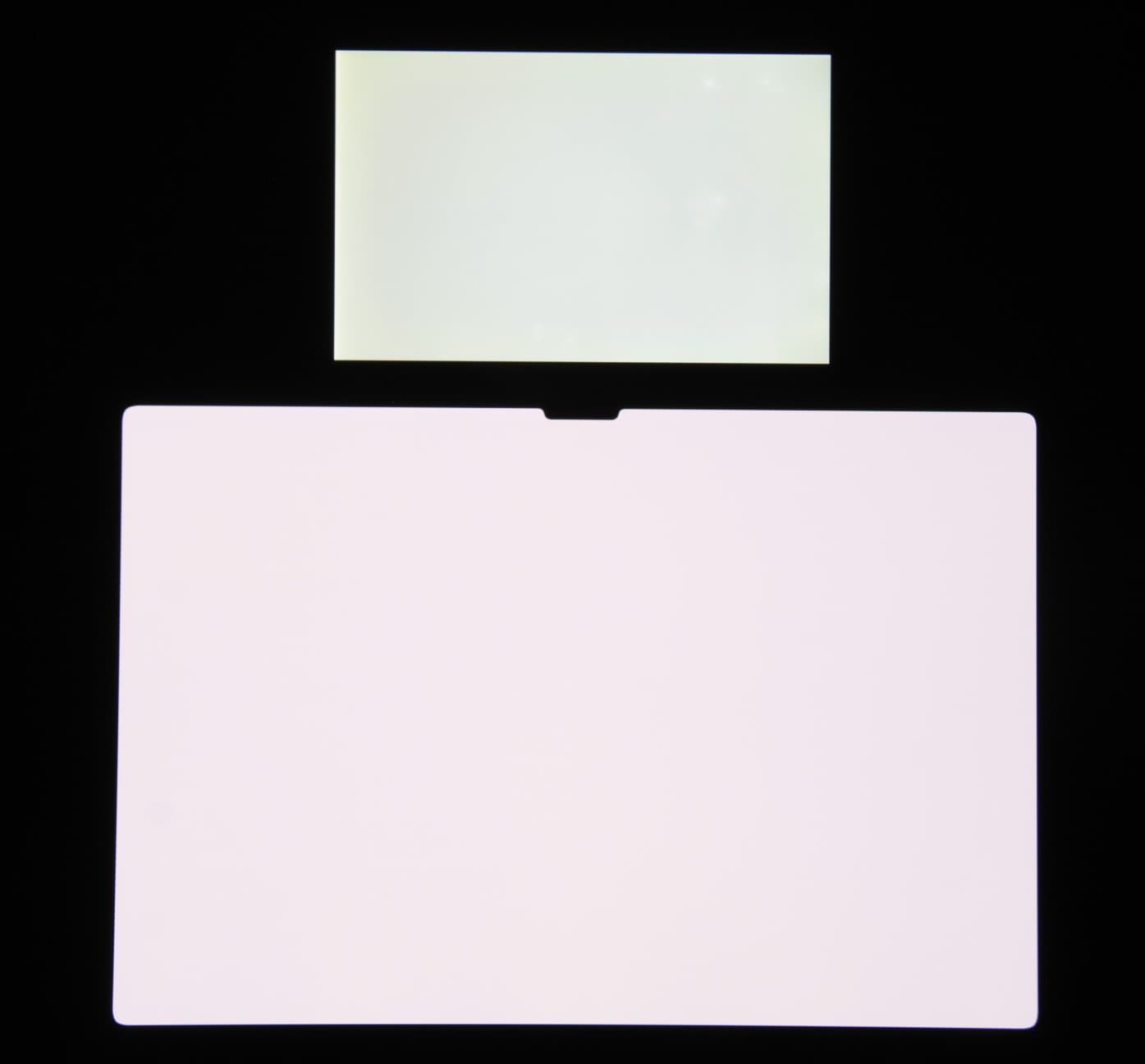 Экран характеризуется великолепными углами обзора. Правда, белый цвет при отклонении приобретает легкий сине-зеленый оттенок, но черный цвет остается просто черным под любыми углами. Он настолько черный, что параметр контрастности в данном случае неприменим. Для сравнения приведем фотографии, на которых на экран тестируемого планшета и на экран второго участника сравнения выведены одинаковые изображения, при этом яркость экранов изначально установлена примерно на 200 кд/м², а цветовой баланс на фотоаппарате принудительно переключен на 6500 К.