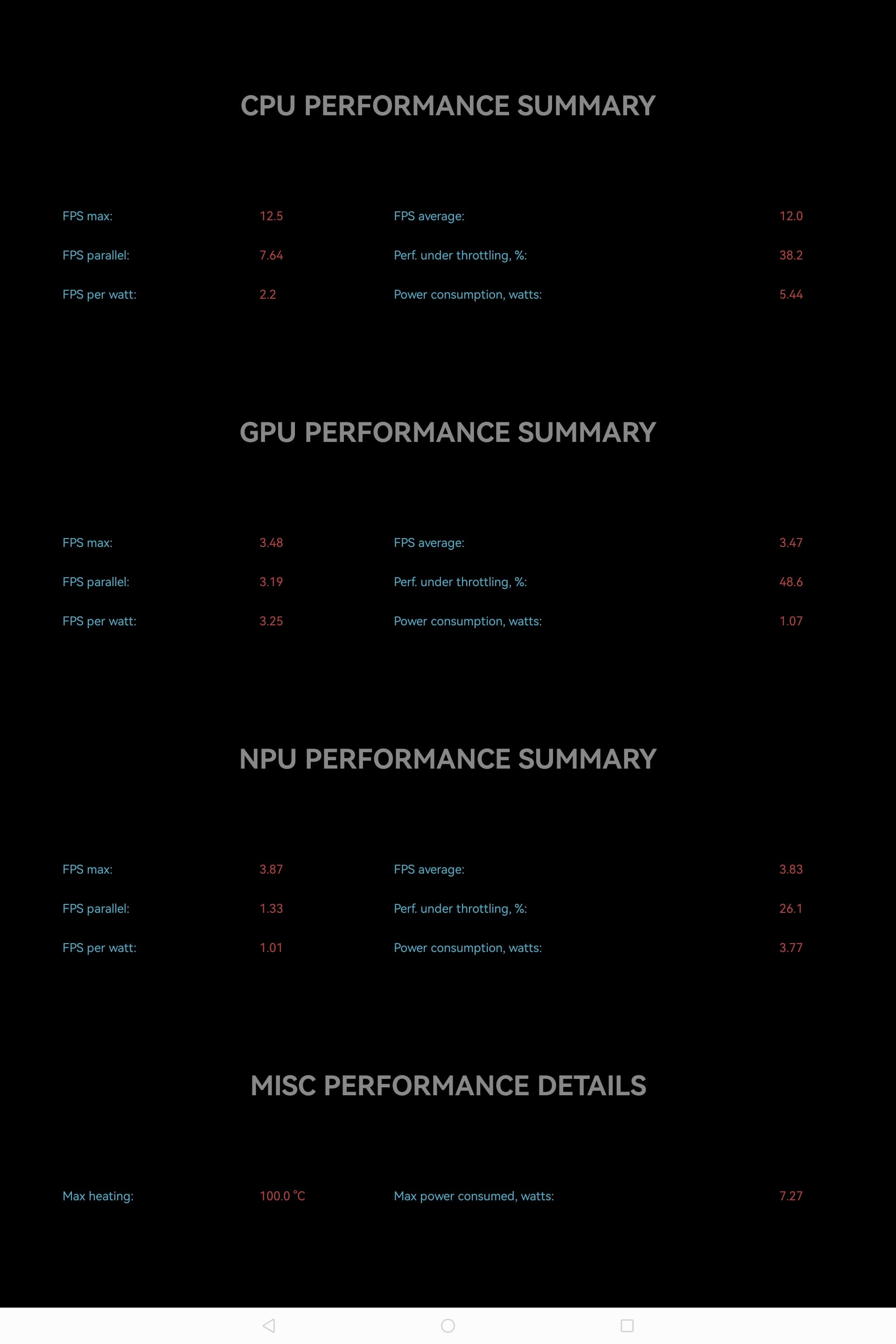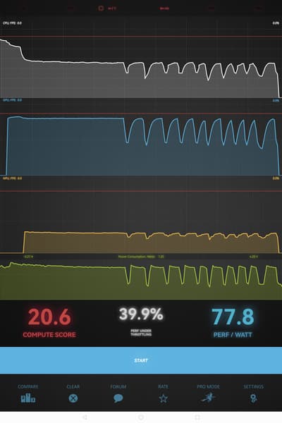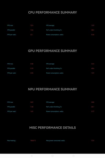 Тест на снижение производительности при нагреве мы проводим с помощью программы Burnout Benchmark, которая позволяет нагружать CPU, GPU и NPU: