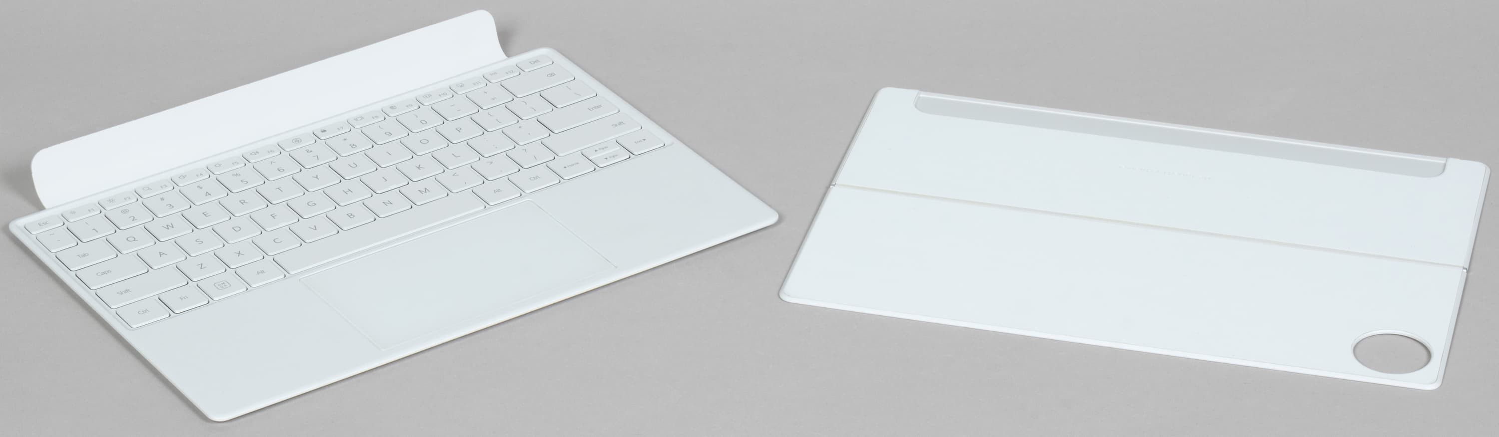 В общем, MatePad Pro 13,2″ с аксессуарами — все-таки вариант не для ультрапортативного использования, а для работы за столом. При этом сама клавиатура здесь комфортнее, чем у более компактных планшетов. Клавиши больше, ход их довольно глубокий, насколько это в данном случае возможно. Есть верхний ряд функциональных клавиш, отсутствующий как у других MatePad, так и у iPad Pro 12,9″. Ну и полноразмерные Shift, Home, End, [{, ]}...
