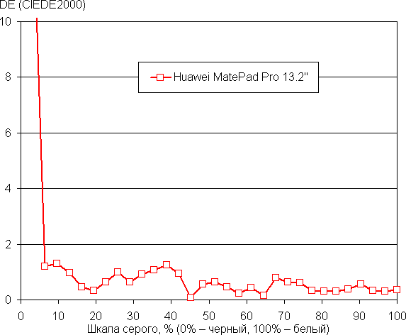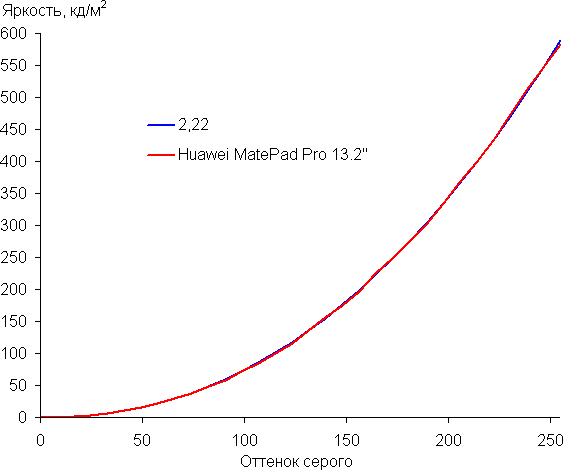 Напомним, что в случае OLED-экранов яркость фрагментов изображения динамично меняется в соответствии с характером выводимого изображения — чуть уменьшается для светлых в целом изображений. В итоге полученная зависимость яркости от оттенка (гамма-кривая), скорее всего, не соответствует гамма-кривой статичного изображения, так как измерения проводились при последовательном выводе оттенков серого почти на весь экран.