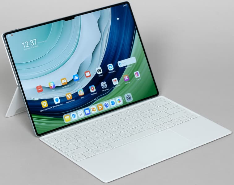 С одной стороны, такое решение можно назвать достаточно продуманным. С другой же, у него есть недостатки. Вся конструкция получается, во-первых, существенно более громоздкой, чем в случае с традиционной обложкой-клавиатурой (на том же MatePad Pro 2022 года или MatePad Air), а во-вторых, не очень надежной. Клавиатура норовит отсоединиться, и если взять планшет, не придерживая клавиатуру, то она может отвалиться просто под собственным весом. Да и обложка прикреплена не намертво, она может попросту соскочить, если как-то неудачно надавить на устройство, что вполне возможно, например, когда используешь планшет в транспорте.