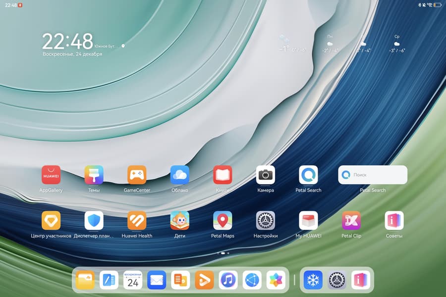 Планшет работает на базе HarmonyOS 4. Это очередная версия ОС Huawei, которая, впрочем, сохраняет все качества HarmonyOS 3, включая поддержку Android-приложений, наличие приложений российских банков, которые удалены из Play Store, в фирменном магазине, а также поддержку российских платежных карт Mastercard, Visa и «Мир» и оплату со счета мобильного оператора.