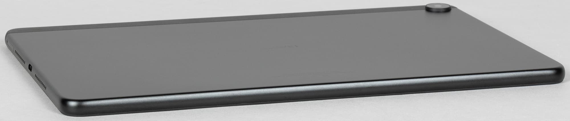 Дизайн планшета традиционно строгий и минималистичный. В принципе, большинство современных планшетов не особенно-то отличаются друг от друга, если смотреть на них спереди, и MatePad SE — не исключение. Поэтому, пожалуй, ключевой показатель здесь — ширина рамки вокруг дисплея. У тестируемого устройства с этим параметром все в порядке, рамка действительно небольшая: 8 мм.