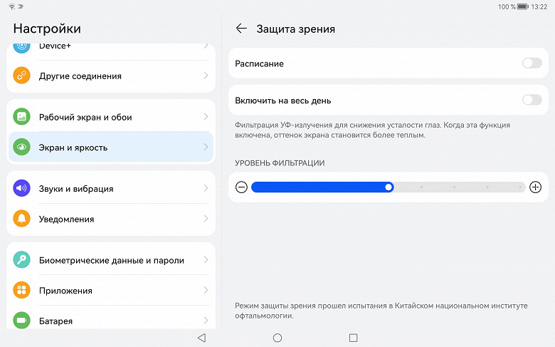Присутствует модная настройка, позволяющая снизить интенсивность синей компоненты.