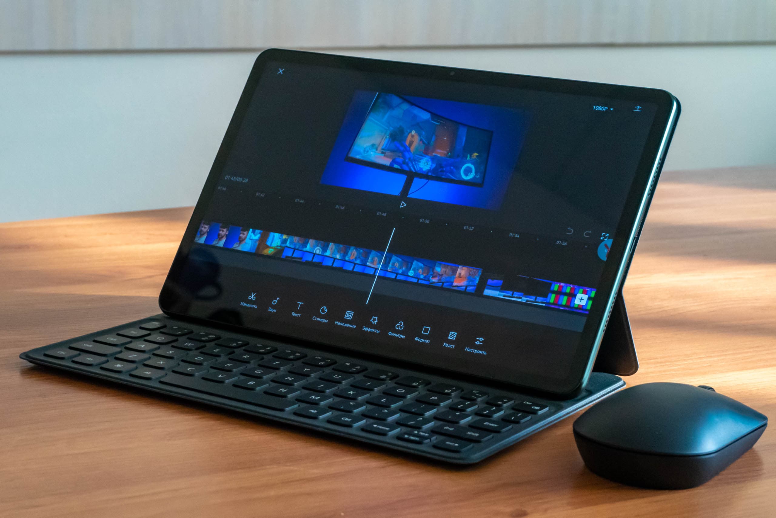 У планшета в качестве компьютера есть преимущества. Разумеется, планшет даже со всеми аксессуарами весит меньше, чем самые лёгкие ноутбуки: 485 грамм приходится на само устройство, еще 320 грамм весит чехол-клавиатура, а мышка вовсе почти невесома. Итого полный комплект — меньше килограмма.