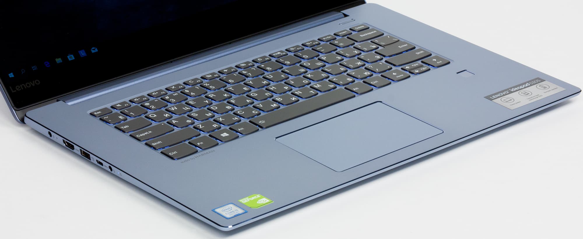 Lenovo Ideapad 530S — типичный портативный ноутбук с претензией на высший класс: корпус здесь целиком алюминиевый, красивого голубого (в нашем случае) цвета. Основная часть корпуса светло-голубая, крышка чуть темнее, смотрится это отлично. Есть также варианты черного, серого и медного цвета, но медных мы в продаже в России (на момент подготовки обзора) не нашли.