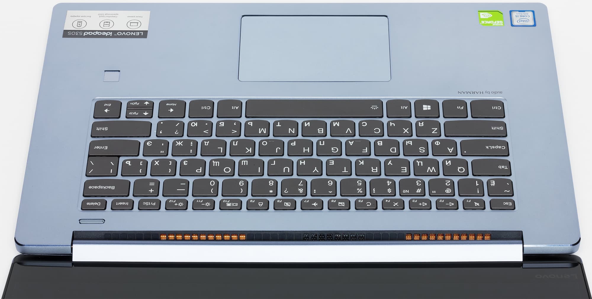 В Lenovo Ideapad 530S реализована забавная функция, сближающая это устройство со смартфонами: если нажать любую кнопку на клавиатуре выключенного (но не разряженного «в ноль») ноутбука, на экране на короткое время высветится оставшийся процент заряда батареи.
