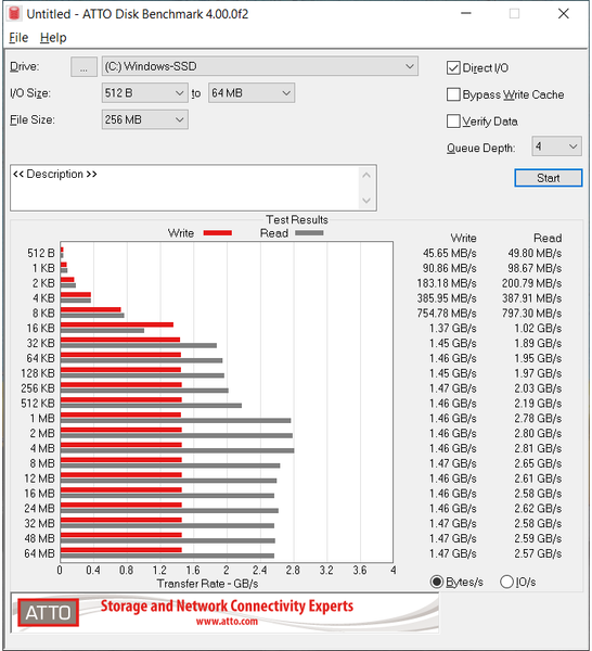 И возможности порта PCIe x4 здесь не пропадают зазря, скорости линейного чтения и записи очень высокие: 2,6-2,8 и 1,5 ГБ/с соответственно. Таким образом, мы вправе ожидать, что быстрый SSD будет несколько маскировать слабую производительность процессора.