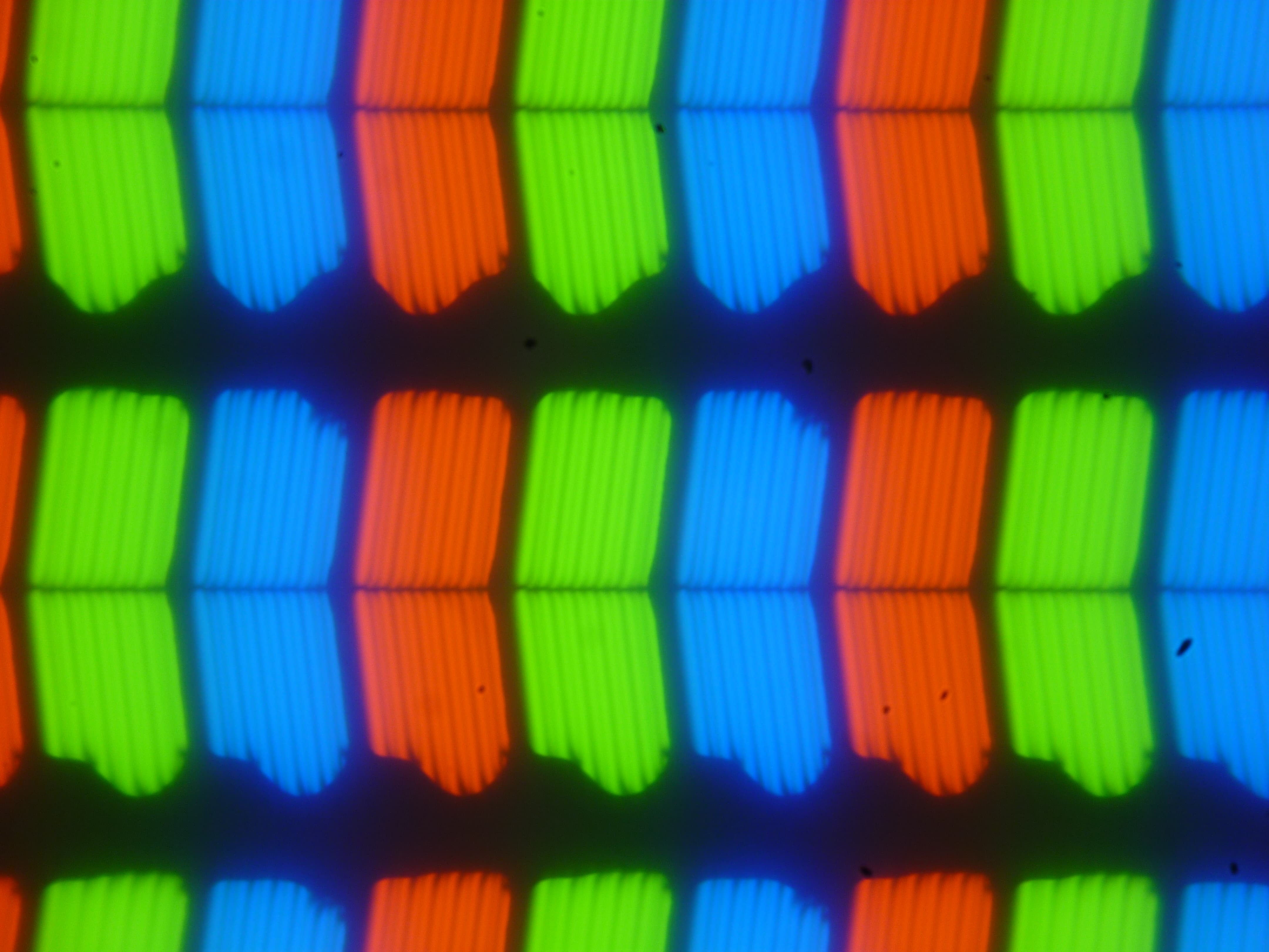 В Lenovo Ideapad 530S-15IKB используется матрица типа IPS. Микрофотографии демонстрируют типичную для IPS структуру субпикселей (черные точки — это пыль на матрице фотоаппарата):