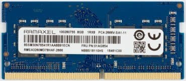 | Оперативная память | 1×8 ГБ DDR4-2667 (Ramaxel RMSA3260MD78HAF-2666) также может устанавливаться 4 или 16 ГБ, но во всех случаях одним модулем SO-DIMM | |