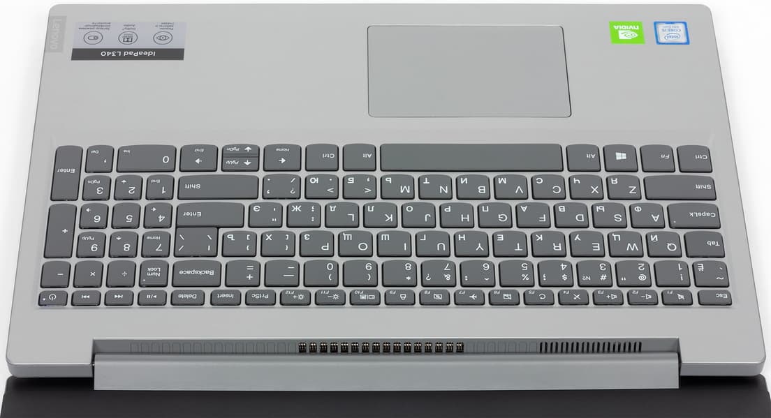 Ноутбук имеет две видеокарты, то есть встроенное графическое ядро процессора дополнено дискретной Nvidia GeForce MX110. Однако не спешите радоваться: это решение совсем начального уровня — по сути, старый добрый GeForce 920MX, еще архитектуры Maxwell. Казалось бы, установка такой карточки — это просто пускание пыли в глаза покупателю. Да. Но не совсем. Трудно поверить, что отдел маркетинга Lenovo не понимал, насколько легче соблазнить не очень сведущего человека сделать выбор в пользу ноутбука компании, если конкуренты за те же деньги предлагают только встроенную графику, а IdeaPad L340-15IWL — аж дискретный видеоускоритель Nvidia. (На самом деле, конкуренты, конечно, тоже предлагают дешевые ноутбуки с ультрабюджетными картами Nvidia, в том числе и с GeForce MX110.) И все-таки резоны для использования такой конфигурации есть. Во-первых, GeForce MX110 по спецификациям заметно превосходит UHD Graphics 620. Во-вторых, в данном случае UHD Graphics 620 никак не может работать на своем максимуме, тут у всего процессора потребление ограничено на уровне 10 Вт, а встроенное видеоядро «ест» под нагрузкой менее 9 Вт. В-третьих, чип MX110 расположен на плате отдельно, и хотя кулер в ноутбуке один, все-таки использование дискретного GPU позволяет лучше его охлаждать.