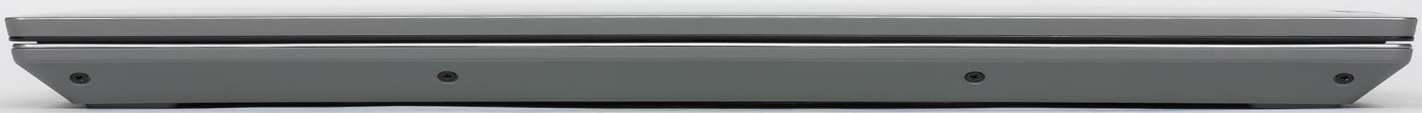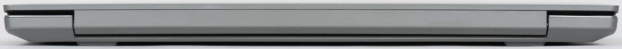 Крышка при поднятии уезжает немного назад (увеличивая габаритную глубину ноутбука), но не опускается ниже плоскости днища. При желании крышку можно отклонить чуть менее чем на 180°. В любом положении крышка фиксируется жестко, одной рукой изменять ее положение неудобно, а открыть — вообще невозможно (хотя подцепляется она очень хорошо). Никаких элементов на крышке нет, за исключением не слишком изящно вставленной маленькой плашки с именем производителя. Большой кожух, скрывающий петли экрана, сделан из пластика, в образуемую им щель на тыльной стороне корпуса выведены единственные вентиляционные отверстия для удаления горячего воздуха.