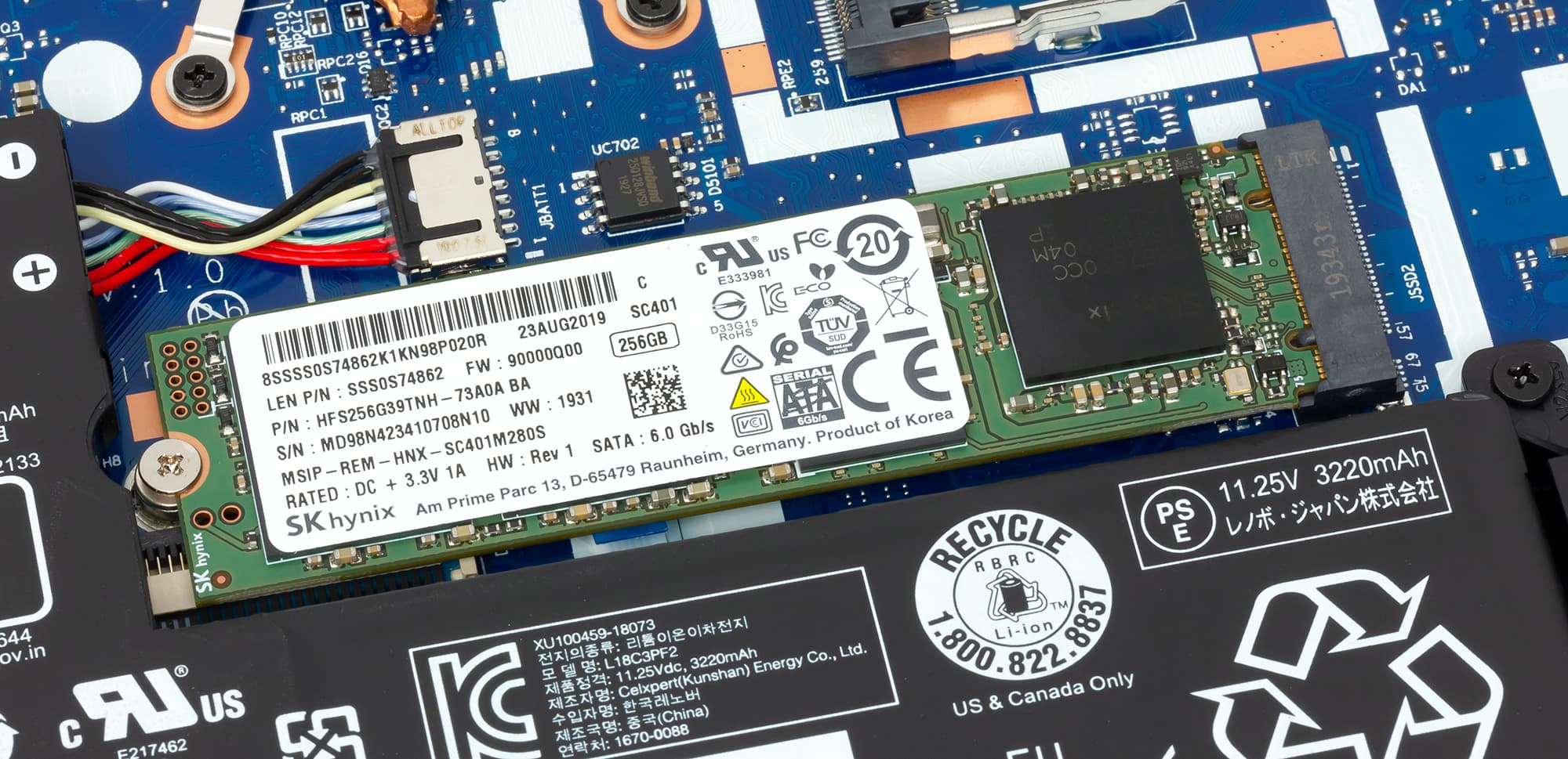| Накопитель | 1 × SSD 256 ГБ (SK Hynix SC401 (HFS256G39TNH-73A0A), M.2, SATA600) также может устанавливаться SSD на 128 или 512 ГБ, в дополнение или вместо SSD может устанавливаться HDD на 500 ГБ или 1 ТБ | |