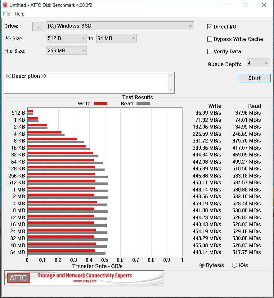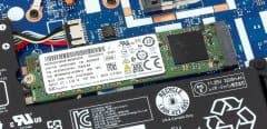 Что касается системного накопителя, то его в данном случае нельзя назвать особенно быстрым, но все-таки это SSD, и скорость в чисто вычислительных задачах он ограничивать не будет. Напомним, в нашем ноутбуке применен SK Hynix SC401 (HFS256G39TNH-73A0A) на 256 ГБ, установленный в слот M.2 и подключенный к внутреннему порту SATA. На практике SSD обеспечивает ровно тот комфорт в скорости загрузки системы и запуска приложений, ради которого накопители этого типа и ставят практически во все современные компьютеры. Ну а теоретические скорости чтения/записи здесь, конечно, невысоки: сказывается интерфейс SATA600. В целом можно говорить о линейных скоростях 530/450 МБ/с.