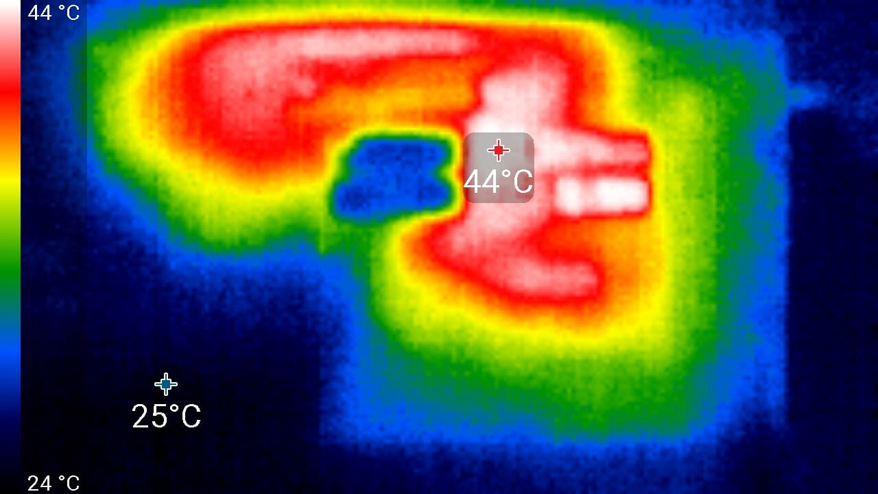 Ниже приведены термоснимки, полученные после долговременной работы ноутбука под максимальной нагрузкой на CPU и GPU: