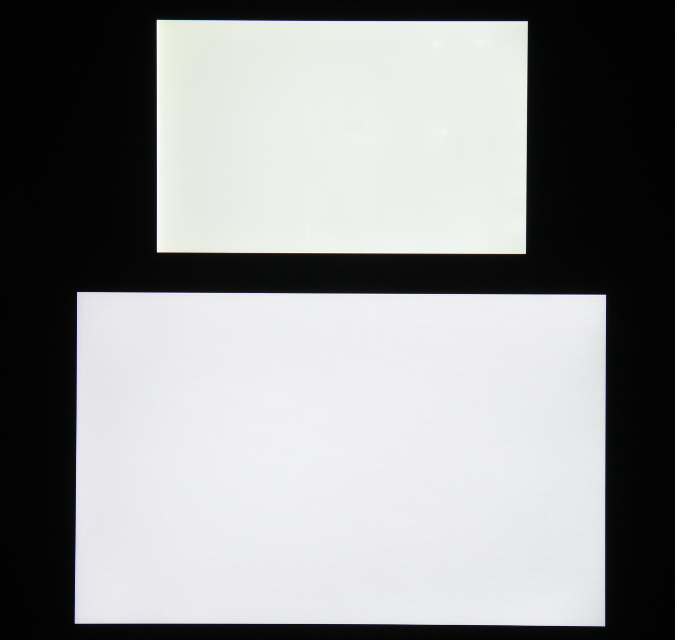 Яркость под углом у экранов уменьшилась (как минимум в 5 раз, исходя из разницы в выдержке), но в случае Lenovo Tab M10 HD яркость снизилась не так сильно. Черное поле при отклонении по диагонали сильно высветляется, но остается условно нейтрально-серым (так это воспринимают глаза). Фотографии ниже это демонстрируют (яркость белых участков в перпендикулярном плоскости экранов направлении одинаковая!):