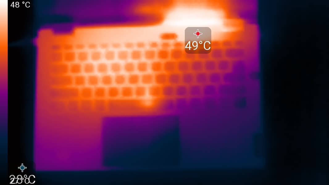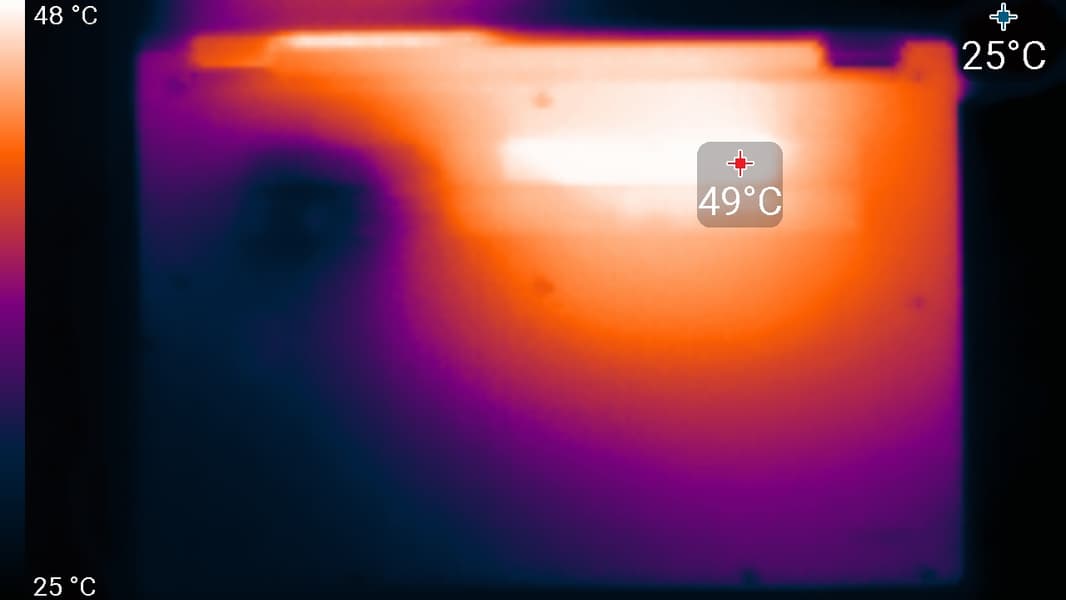 Ниже приведены термоснимки, полученные после долговременной работы ноутбука под максимальной нагрузкой на CPU и GPU в профиле Extreme performance: