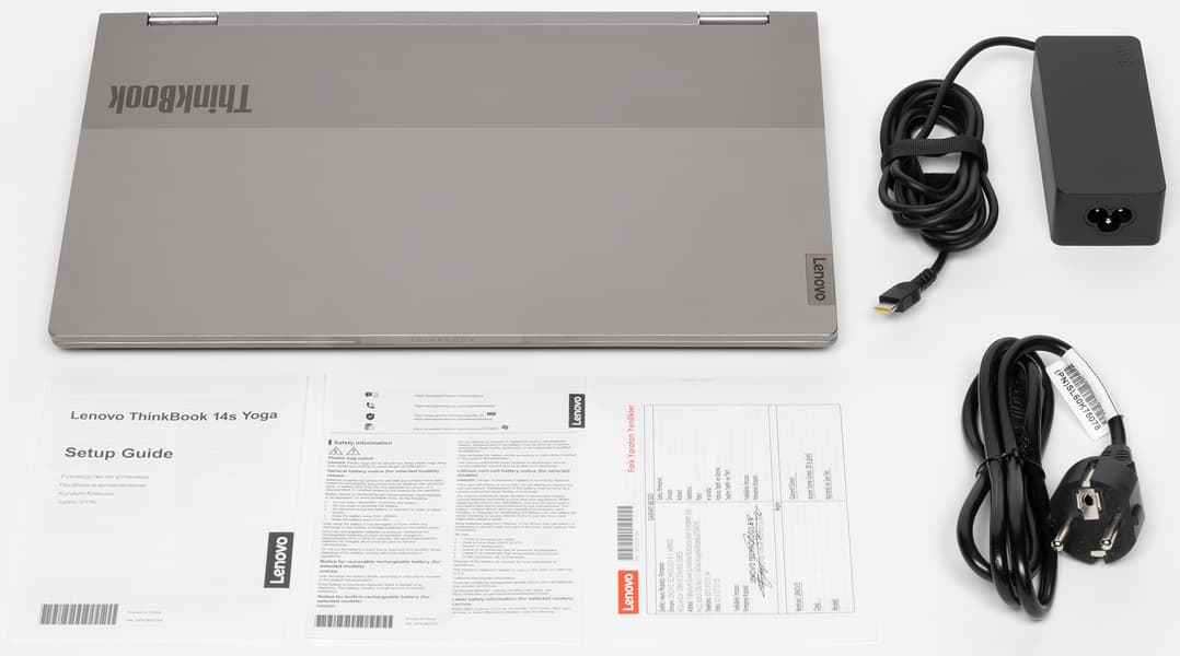 Переходя к сути темы, начнем с того, что с марками ThinkBook и Yoga разобраться нелегко: моделей с такими названиями у Lenovo довольно много; при этом некоторые остаются традиционными (хотя и тонкими) ноутбуками, а некоторые можно превратить в планшет, повернув крышку на 360° и сомкнув ее с днищем корпуса. Подробнее на сайте производителя можно почитать о серии ThinkBook вообще и о Lenovo ThinkBook 14s Yoga конкретно. С индексами в наименовании героя нашего обзора немного проще: «14» — это размер дисплея в дюймах по диагонали, «s» с высокой вероятностью является обозначением сенсорного экрана, а в «ITL» первая «I» используется для указания на процессор Intel (у моделей с процессором AMD — «A»).