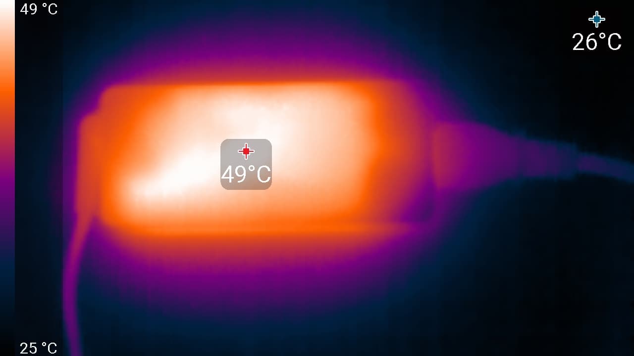 Под максимальной нагрузкой работать с клавиатурой не очень комфортно, так как место под левым запястьем ощутимо нагревается. Держать ноутбук на коленях неприятно, поскольку левое колено ощущает значительный нагрев днища ноутбука (нагрев над правым также чувствуется). Блок питания греется сильно, поэтому при долговременной работе с большой производительностью лучше следить, чтобы он не был ничем накрыт.