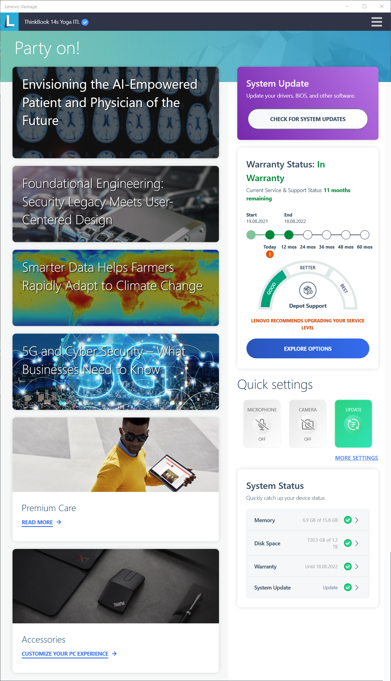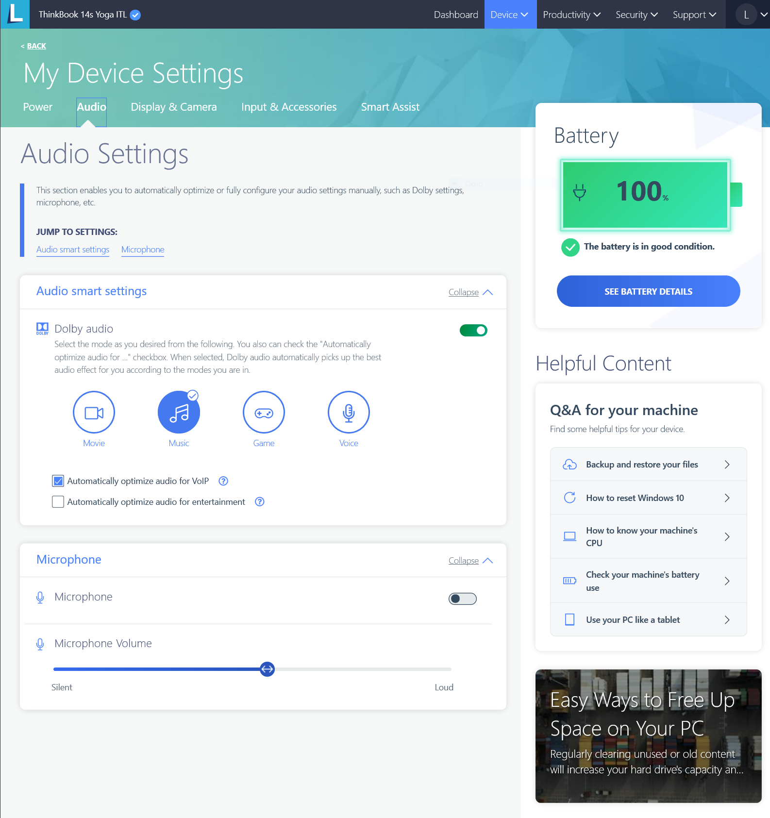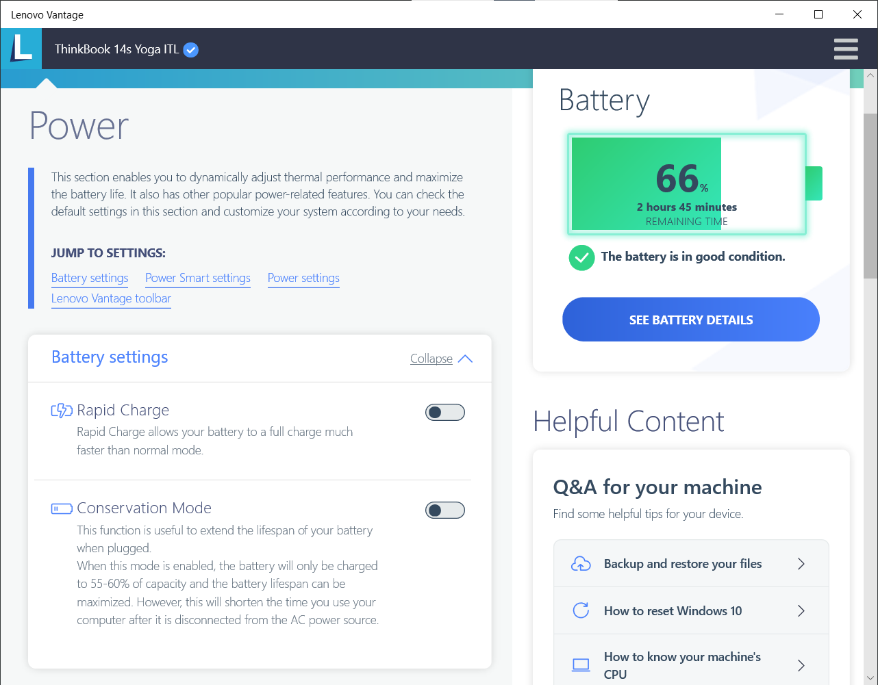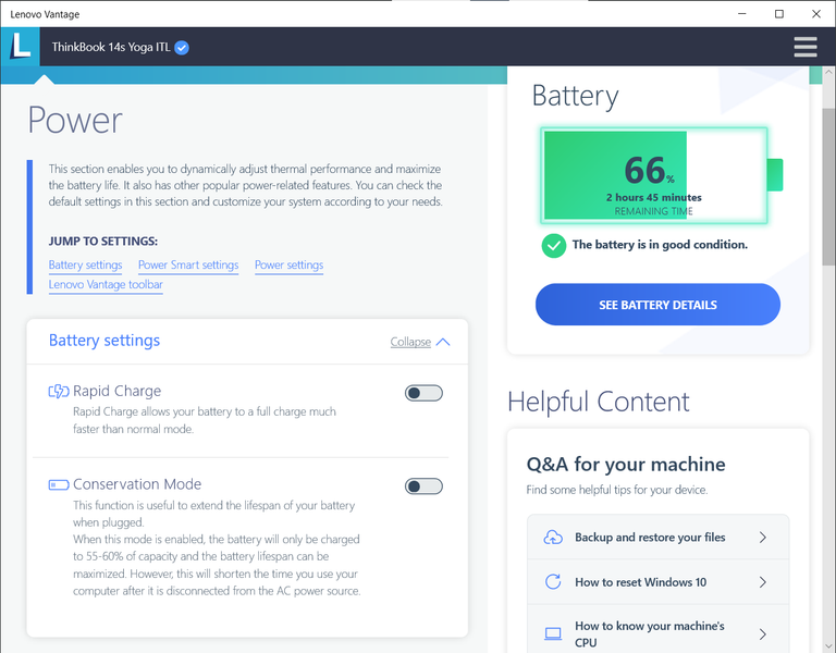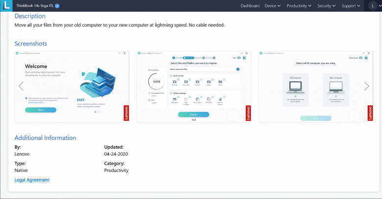 Чтобы в дальнейшем не обращаться к онлайновой службе и всегда иметь под рукой локальное средство управления системой, целесообразно установить приложение Lenovo Vantage из Microsoft Store.