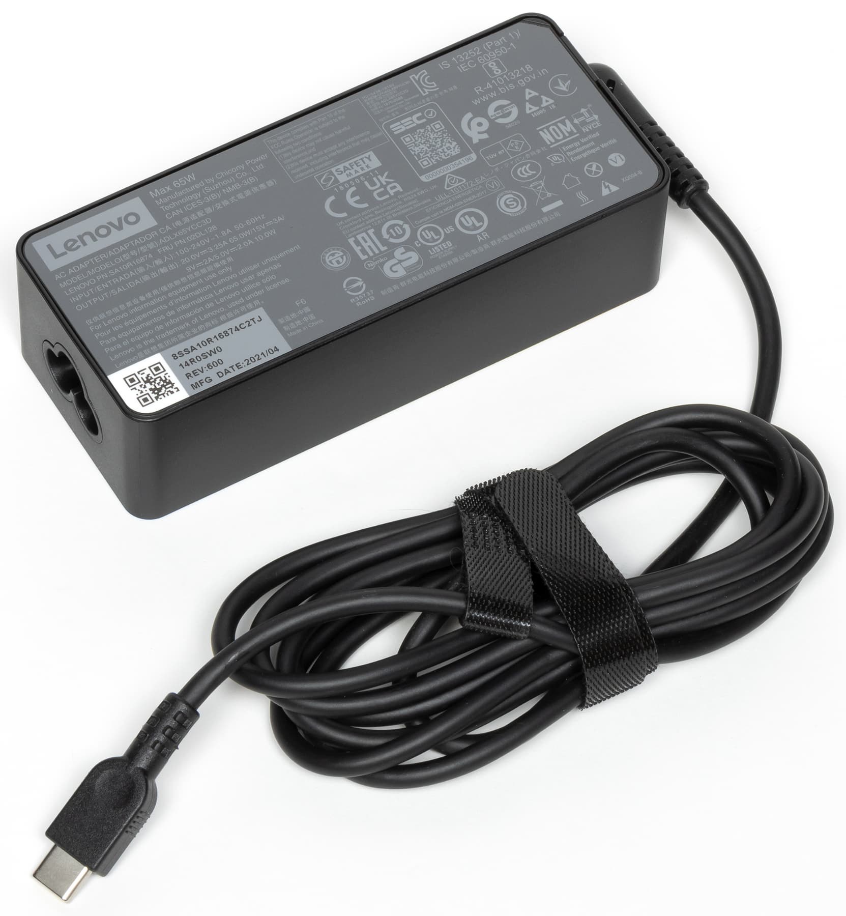 Помимо самого трансформера в комплекте поставки обнаруживается довольно легкий (247 г, с кабелем — 373 г) адаптер питания, который подходит для работы от сети переменного тока 50—60 Гц при напряжении 100—240 В и обеспечивает на выходе 20 В при силе тока 3,25 А (мощность 65 Вт).