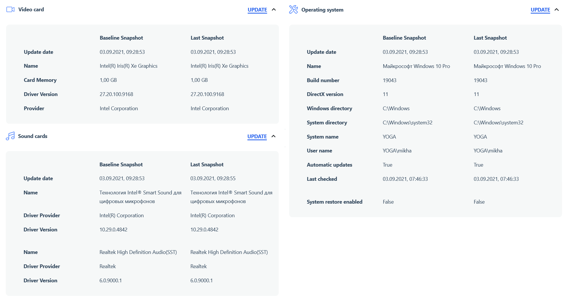 Доступны сведения о видео, аудио и даже операционной системе.