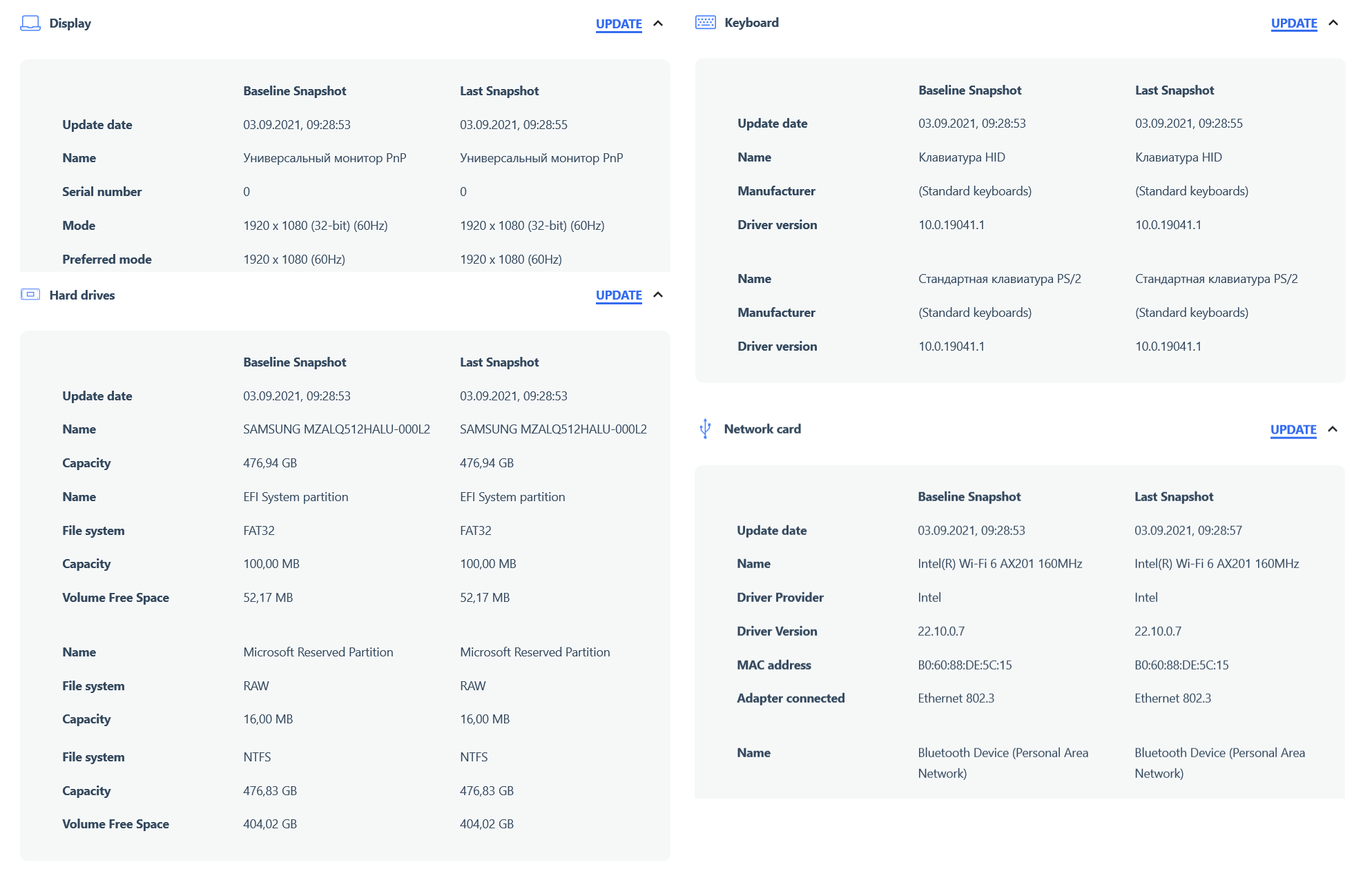 | Сетевые интерфейсы | Беспроводная сеть Wi-Fi | Intel Wi-Fi 6 AX201NGW |