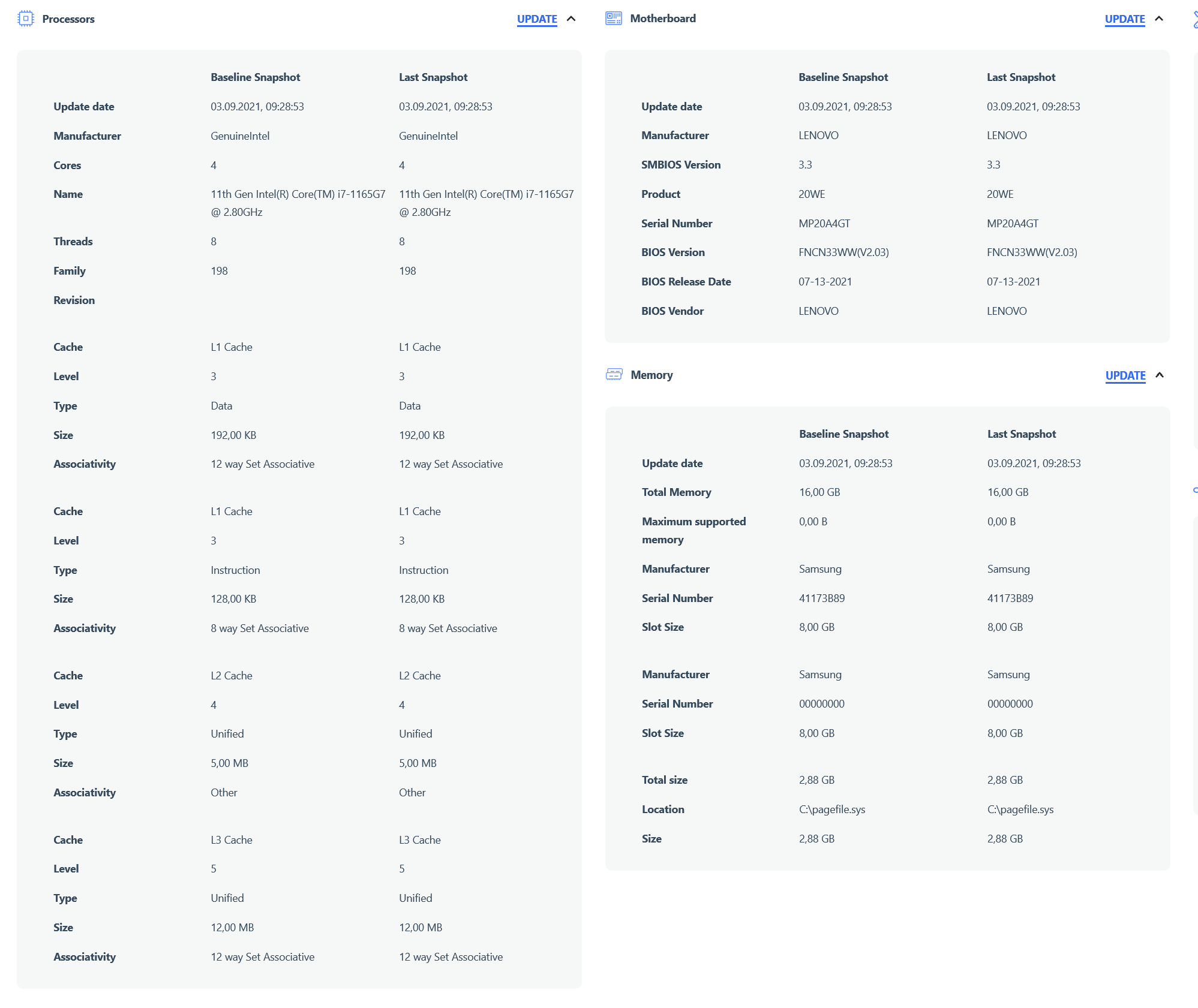 | Оперативная память | 16 ГБ DDR4-3200: 8 ГБ распаяно на системной плате + 8 ГБ в виде модуля SO-DIMM Samsung M471A1K43DI максимальный объем 40 ГБ (8 ГБ на плате и 32 ГБ в слоте) | |