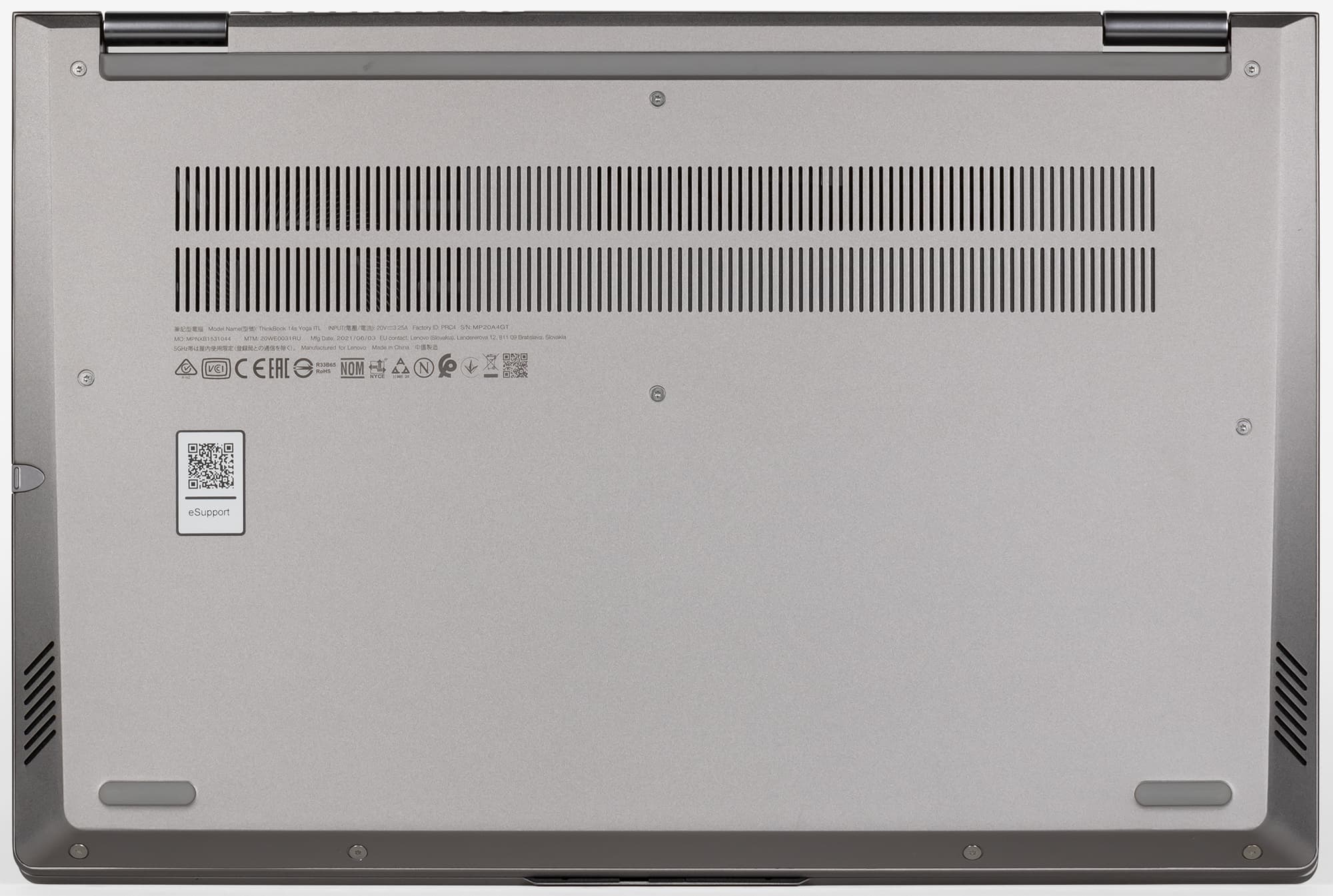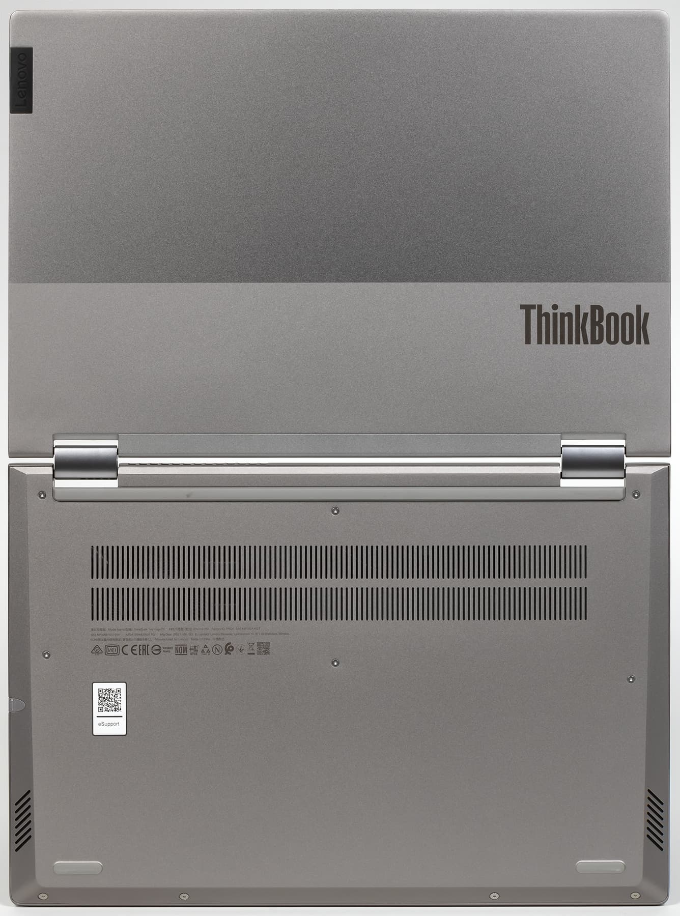 Крышка выглядит отлично, «кабы не портил ее причудливый шрам» (© М. А. Булгаков) в виде расширения на передней боковой поверхности с надписью прописными буквами THINKBOOK. Зачем? Ведь это уже есть на крышке, и там выглядит лучше.