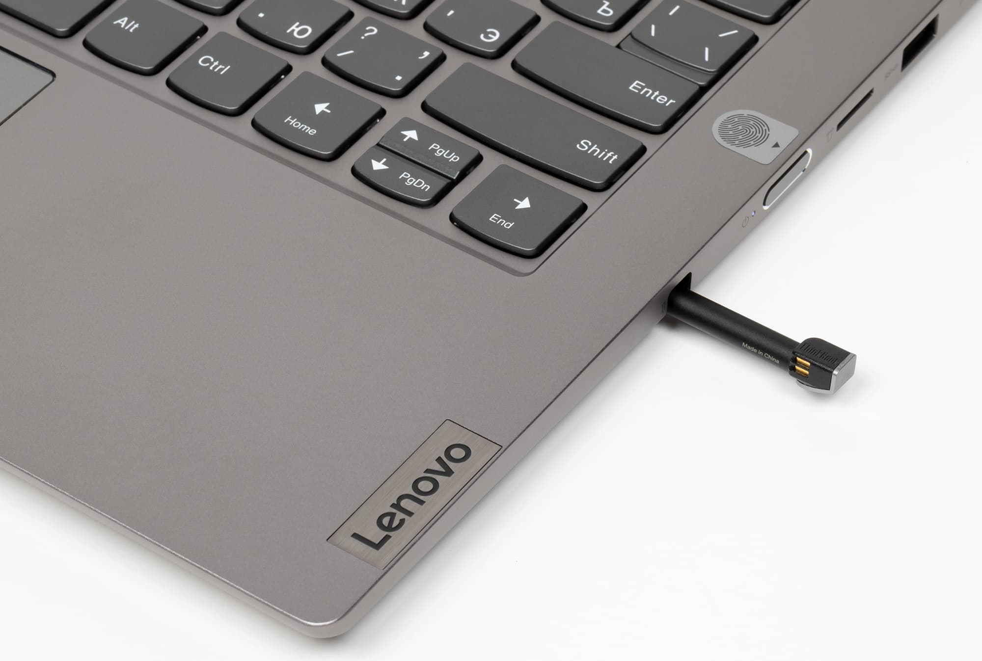 Вероятно, энергией его обеспечивает какой-нибудь специальный суперконденсатор, а не подзаряжаемый электрохимический элемент. В списке системных устройств ему предназначен драйвер Wacom. Очевидно, устройство просто брендировано Lenovo.