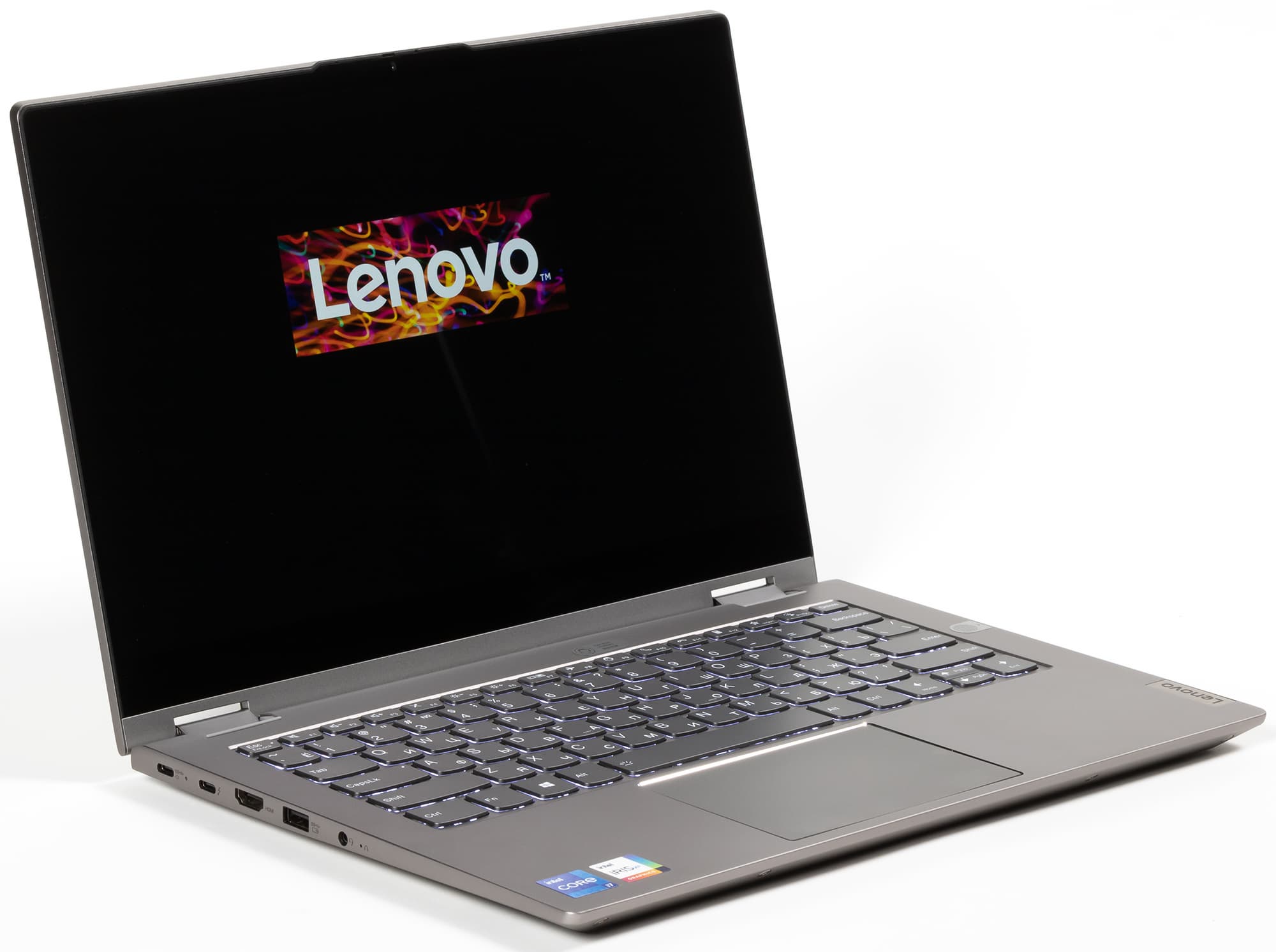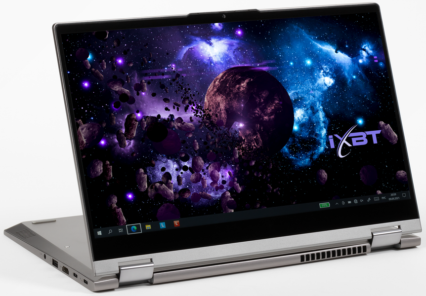 Мы испытали ноутбук-трансформер Lenovo ThinkBook 14s Yoga ITL, который воплощает в себе лучшее из двух миров — полноценный мобильный ПК с удобной клавиатурой и кликпадом и полноценный планшет с отличным экраном, тач-интерфейсом и стилусом. Он построен на базе мобильного процессора Intel Core i7-1165G7 последнего поколения со встроенным видеоускорителем Iris Xe Graphics, оснащен 8 ГБ оперативной памяти, распаянной на системной плате, и 8 ГБ — в виде модуля SO-DIMM, который можно заменить, например, 32-гигабайтной планкой и получить суммарно 40 ГБ доступной памяти. Системный накопитель представлен довольно быстрым SSD Samsung PM991 емкостью 512 ГБ. Возможна установка дополнительного SSD во второй слот M.2. Адаптер Intel AX201 реализует беспроводную связь Wi-Fi 6, также поддерживается Bluetooth 5.0. Набор интерфейсов включает четыре разъема USB3 (два Type-A и два Type-C, причем один из последних поддерживает Thunderbolt 4). Благодаря дактилоскопическому сканеру в выключателе питания, идентификация пользователя происходит в момент первого нажатия на соответствующую кнопку. Дополнительно вводить пароль или PIN не требуется.