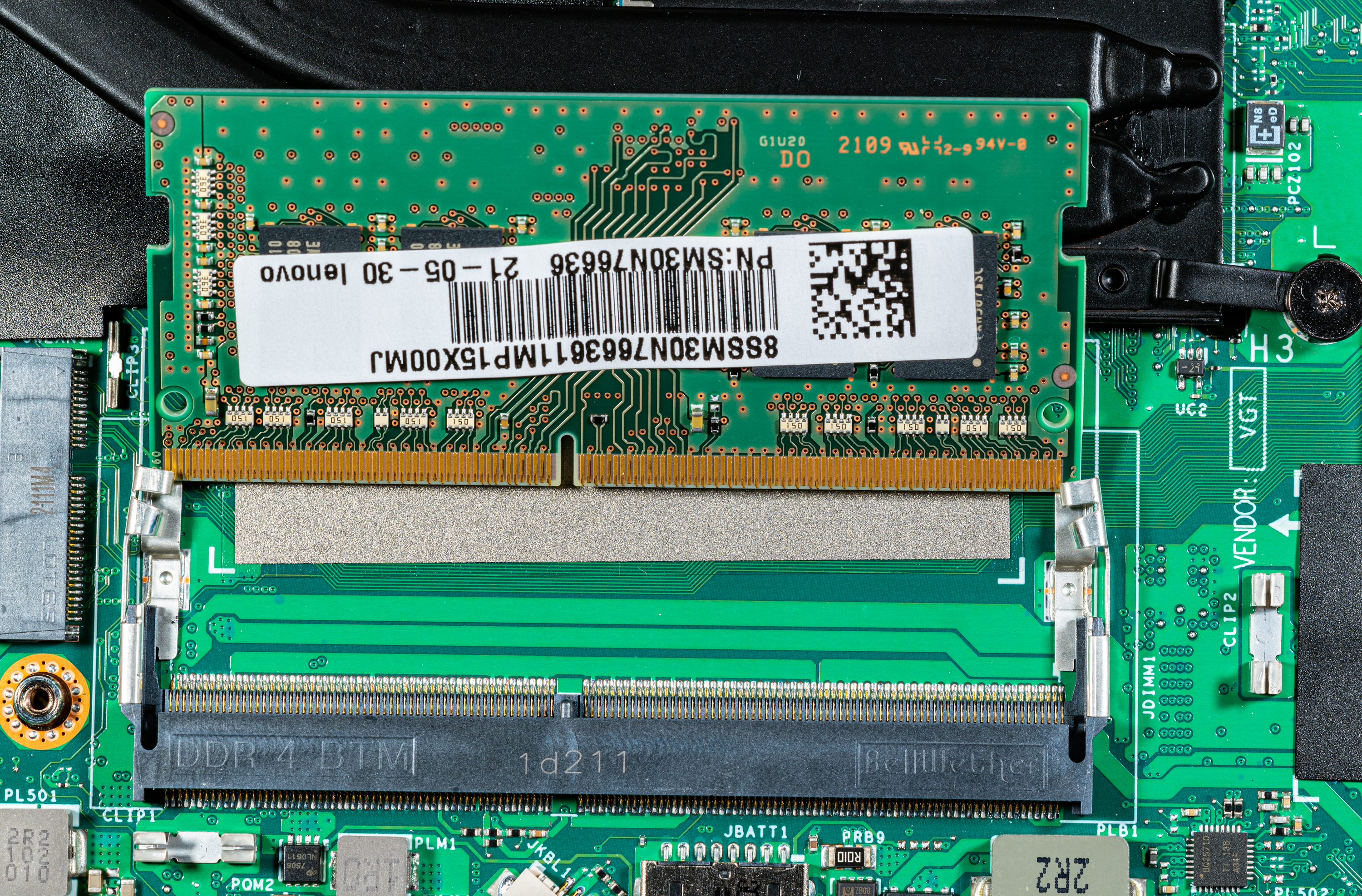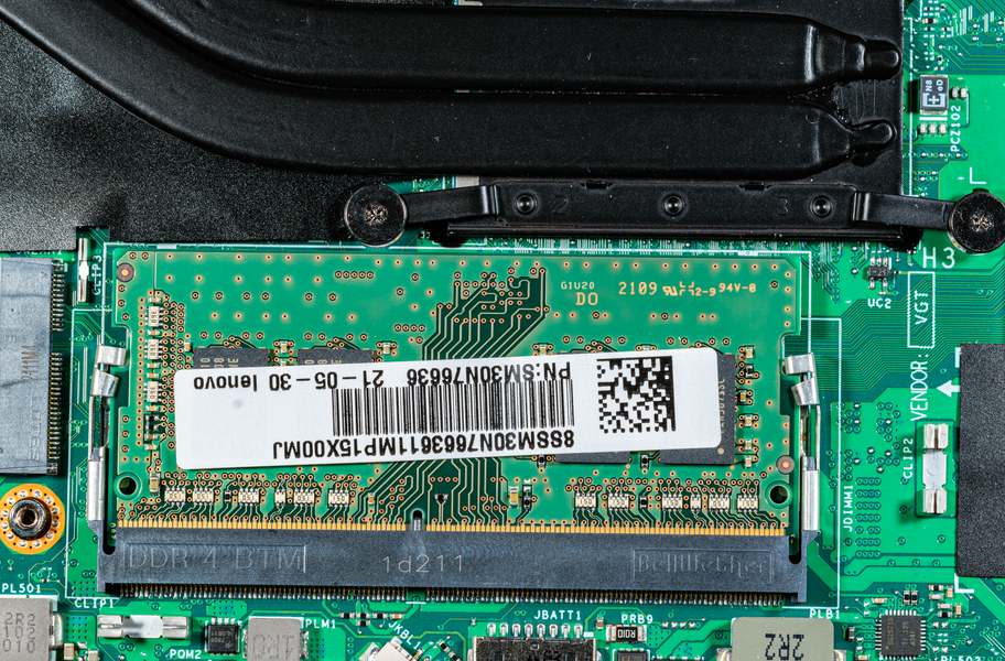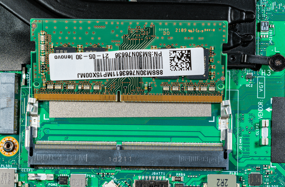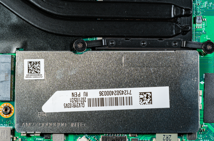 Трансформер располагает 16 ГБ оперативной памяти, работающей в двухканальном режиме. Половина ее распаяна на системной плате, а половина представлена модулем SO-DIMM, установленным в единственном слоте. Последний закрыт сверху металлическим экраном.