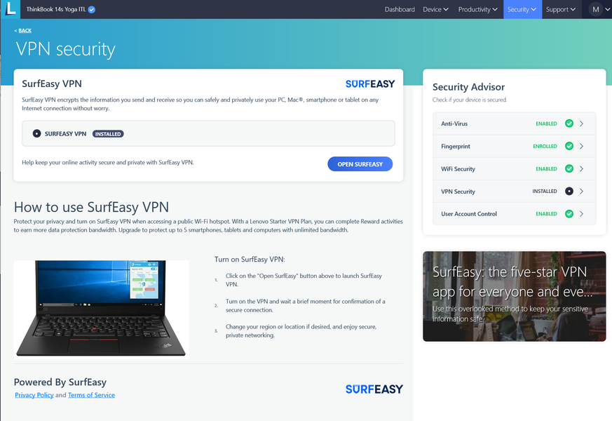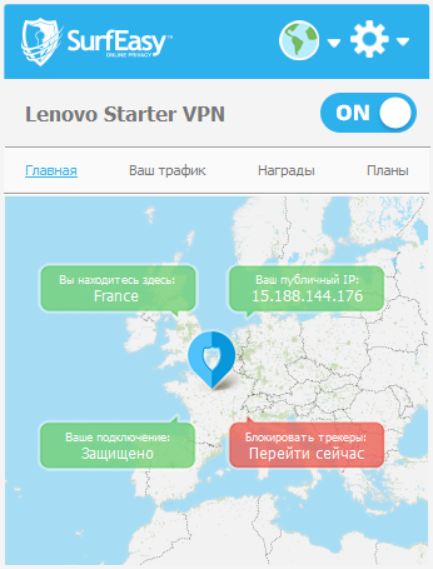 Есть возможность подключения бесплатного и платного вариантов сервиса VPN под названием SurfEasy.