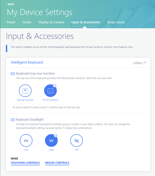 На закладках и в окнах можно настроить практически все — от режима энергосбережения до функциональных клавиш