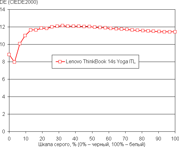 То, что наш герой в большинстве номинаций проигрывает референсной системе, не удивляет: во-первых, типичный мобильный процессор по определению уступает типичному десктопному, во-вторых, девятое поколение Core — это еще не каменный век, а в-третьих, шесть ядер обычного CPU мощнее, чем четыре ядра чипа с низким потреблением. Но в трех номинациях Lenovo ThinkBook 14s Yoga ITL опережает эталон, и если по интегральным баллам за накопитель этого можно было ожидать (SSD с интерфейсом PCIe 3.0 против SATA SSD), то победа в раундах «обработка цифровых фотографий» и «архивирование» — важный прецедент для портативной системы, в которой основная ставка делается на автономность, а не на быстродействие. Интегральный результат производительности — победа по очкам: 138 баллов у нашего героя против 100 у референсной системы.