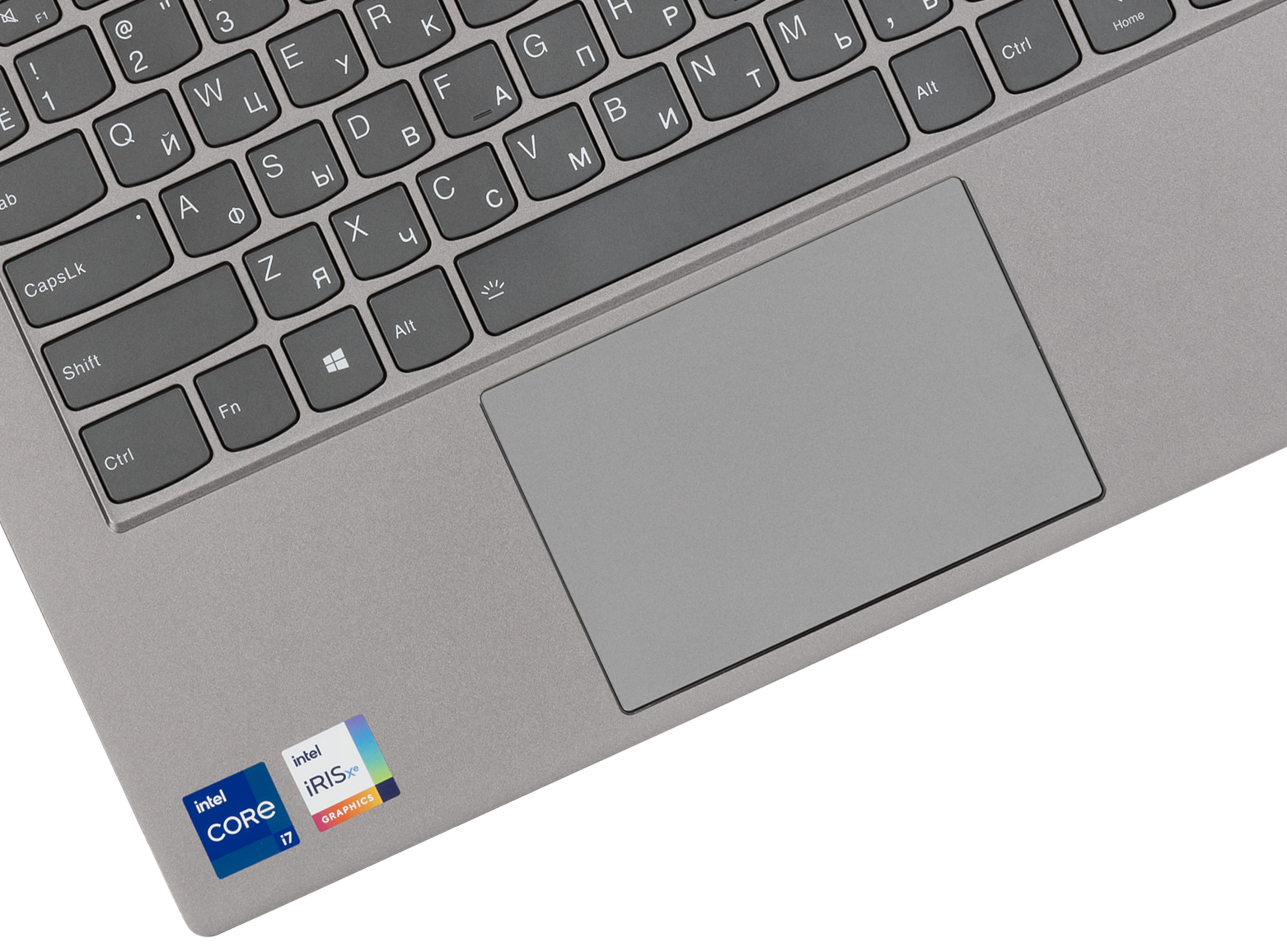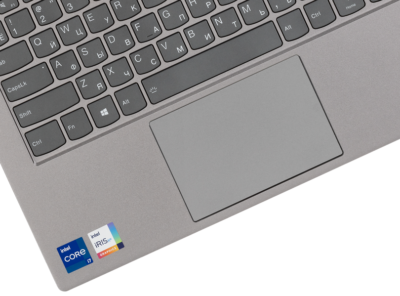 Перед клавиатурой расположен чуть утопленный кликпад размером 106×71 мм без выделенных кнопок. Дальняя часть сенсорной площадки на нажатия реагирует не слишком уверенно, их лучше совершать в ближней части, где четкость срабатывания очень хорошая. С жестами, подразумевающими только касание поверхности, никаких проблем нет.