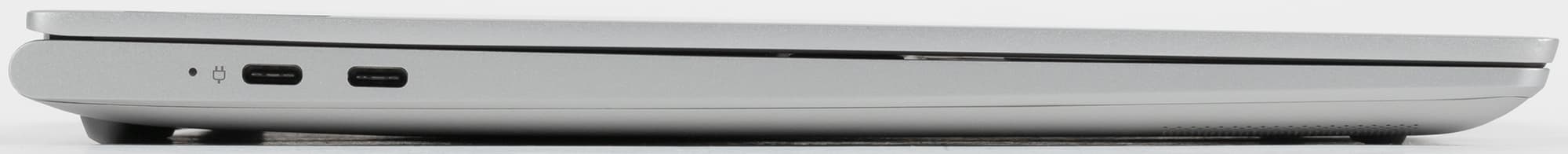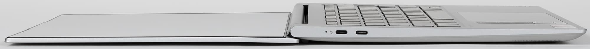 Интерфейсных разъемов немного и по бокам. Слева расположены два порта USB3 Gen2 Type-C, любой из них может служить разъемом питания при подключении штатного адаптера. К слову, хотя штатный адаптер трудно назвать крупным, кому-то может оказаться удобнее купить еще более компактный источник питания на 65 Вт (требуется лишь, чтобы он выдавал 20 В 3,25 А). Разъемы USB Type-C можно также использовать для вывода видео и подключения дополнительных мониторов, поддерживается DisplayPort 1.4.