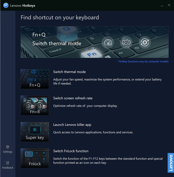 Еще Lenovo предлагает утилиту для информирования пользователя о клавиатурных аккордах для аппаратных функций (переключение режима работы системы охлаждения и энергопотребления, частоты обновления экрана), а также утилиту Lenovo Voice для голосового ввода текста с возможностью перевода и для управления голосовыми командами (русский язык не поддерживается).
