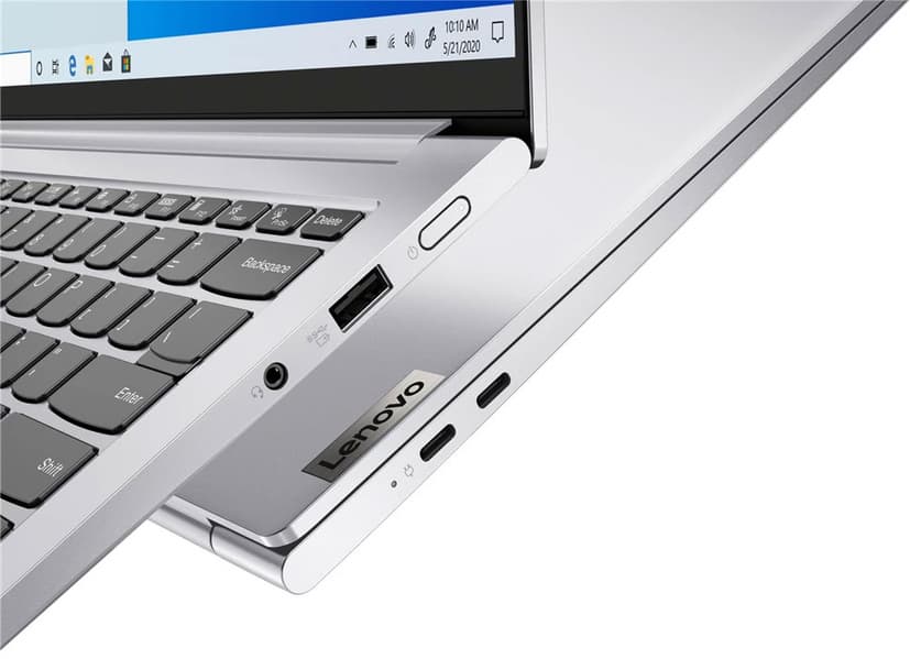Справа есть универсальный миниджек для подключения наушников или гарнитуры и порт USB3 Gen1 Type-A. От последнего удобно заряжать мобильные устройства, так как он работает даже у выключенного ноутбука (эта функция при необходимости отключается). Справа же расположена и кнопка включения с индикатором состояния, причем кнопка чуть утоплена: случайно ее точно не нажмешь, но и нащупать, не глядя, не так уж просто. Выручает очень удобная и логичная функция автоматического включения ноутбука при открытии крышки (можно отключить ее в настройках фирменной утилиты Lenovo Vantage).