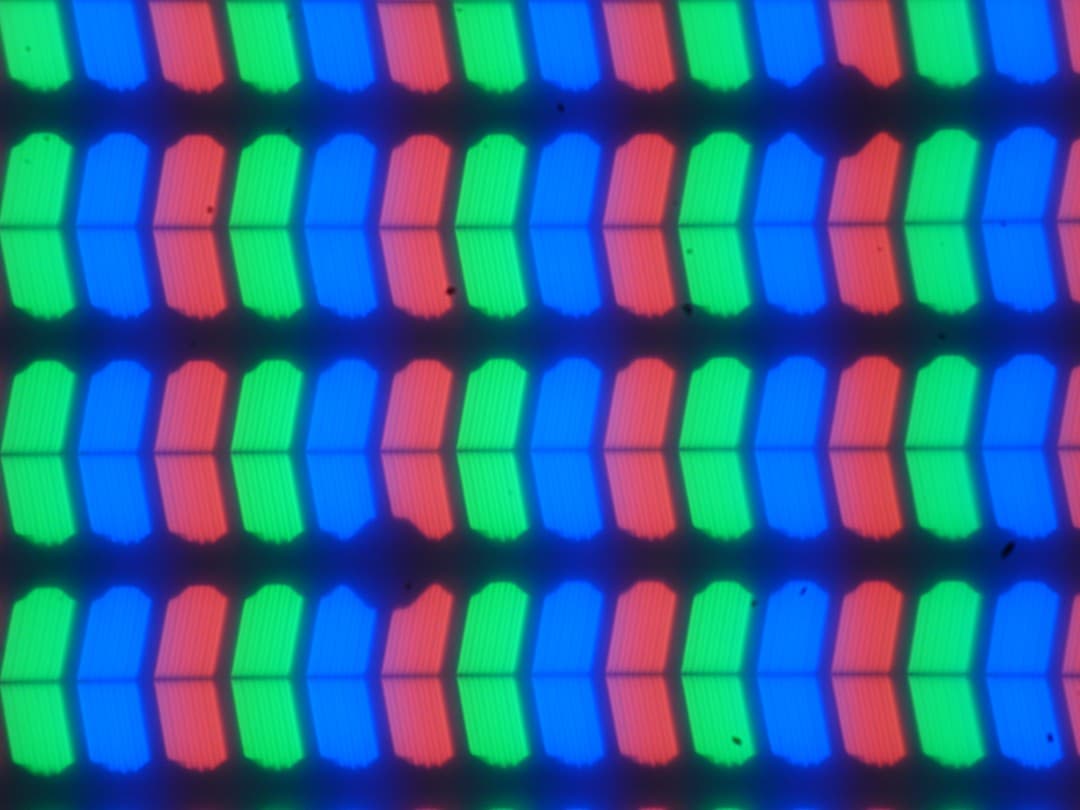 В этом ноутбуке используется матрица типа IPS. Микрофотографии демонстрируют типичную для IPS структуру субпикселей (черные точки — это пыль на матрице фотоаппарата):