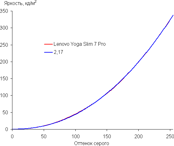 Аппроксимация полученной гамма-кривой дала показатель 2,17, что близко к стандартному значению 2,2. При этом реальная гамма-кривая мало отклоняется от аппроксимирующей степенной функции: